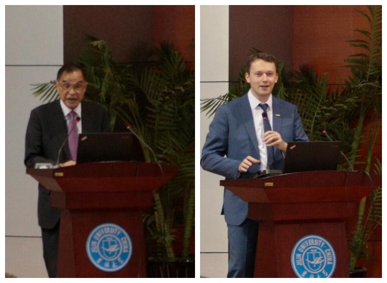 发展进入了一个历史性的新阶段。而公共外交作为一门新兴学科,面对着大量未知的领域和挑战,希望同学们把握时代脉搏,大胆探索,中外学生相互促进,用所学的知识惠及各国人民。中国学生尤其要树立正确的世界观和人生观,成为具有高尚情操的公共外交专门人才,而不能成为“精致的利己主义者”。冯达旋教授则以《文明的碰撞:“一带一路”对人文交流的意义》为题,阐述了自己对“一带一路”的理解和其对沿线国家间人文交流的重要意义,为同学们上了一堂生动的公共外交课程。巴依科夫教授在致辞中首先对香蕉视频