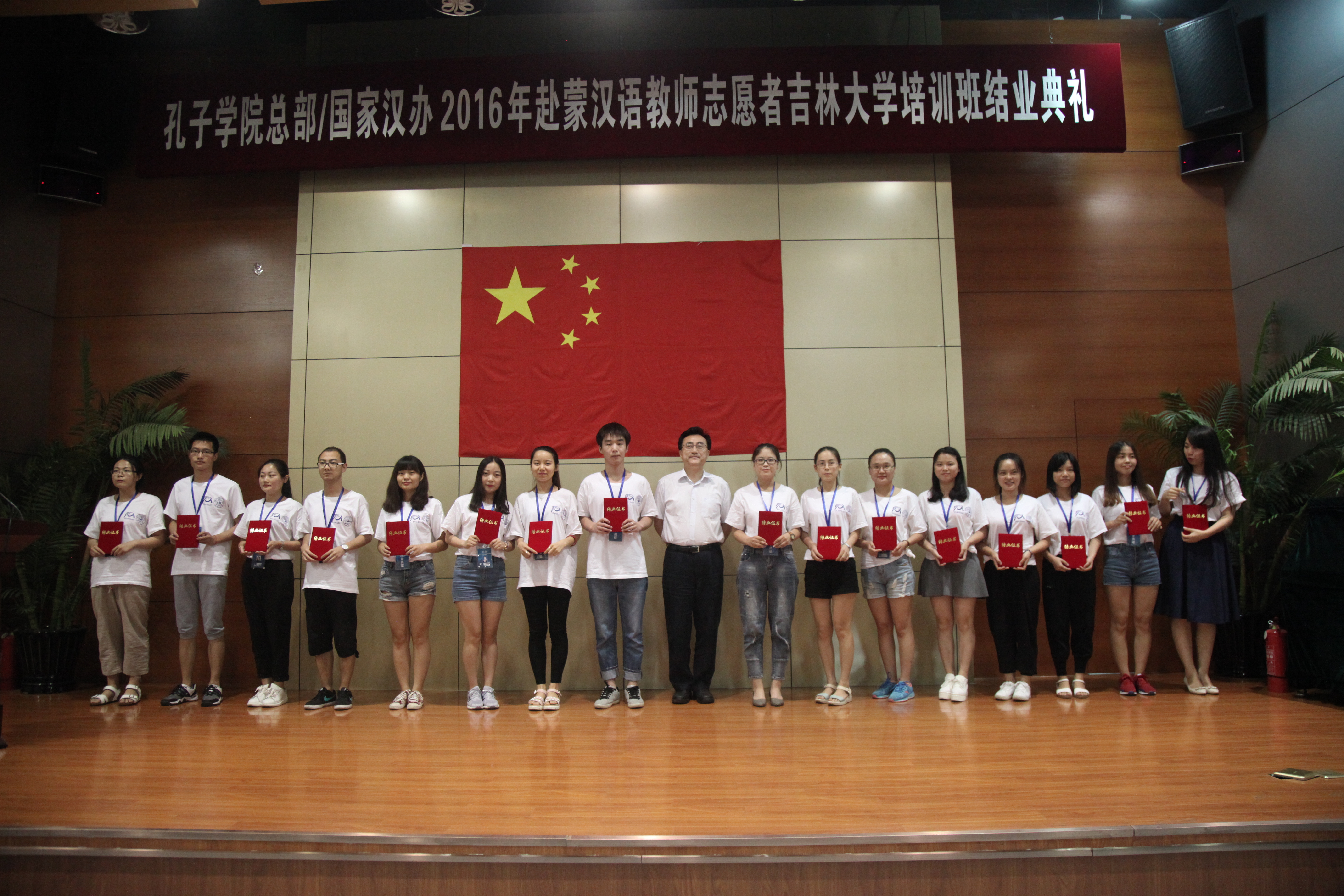 院长刘德斌为志愿者颁发了结业证书和优秀学员证书并致辞,他讲到期望本次的派出任务可以拓展大家的国际视野,丰富自己的人生经历。从志愿者之中产生一批可以将汉语国际推广作为自己的终生职业的常备中坚力量,祝愿大家在蒙古国让汉语国际推广的种子开花结果。