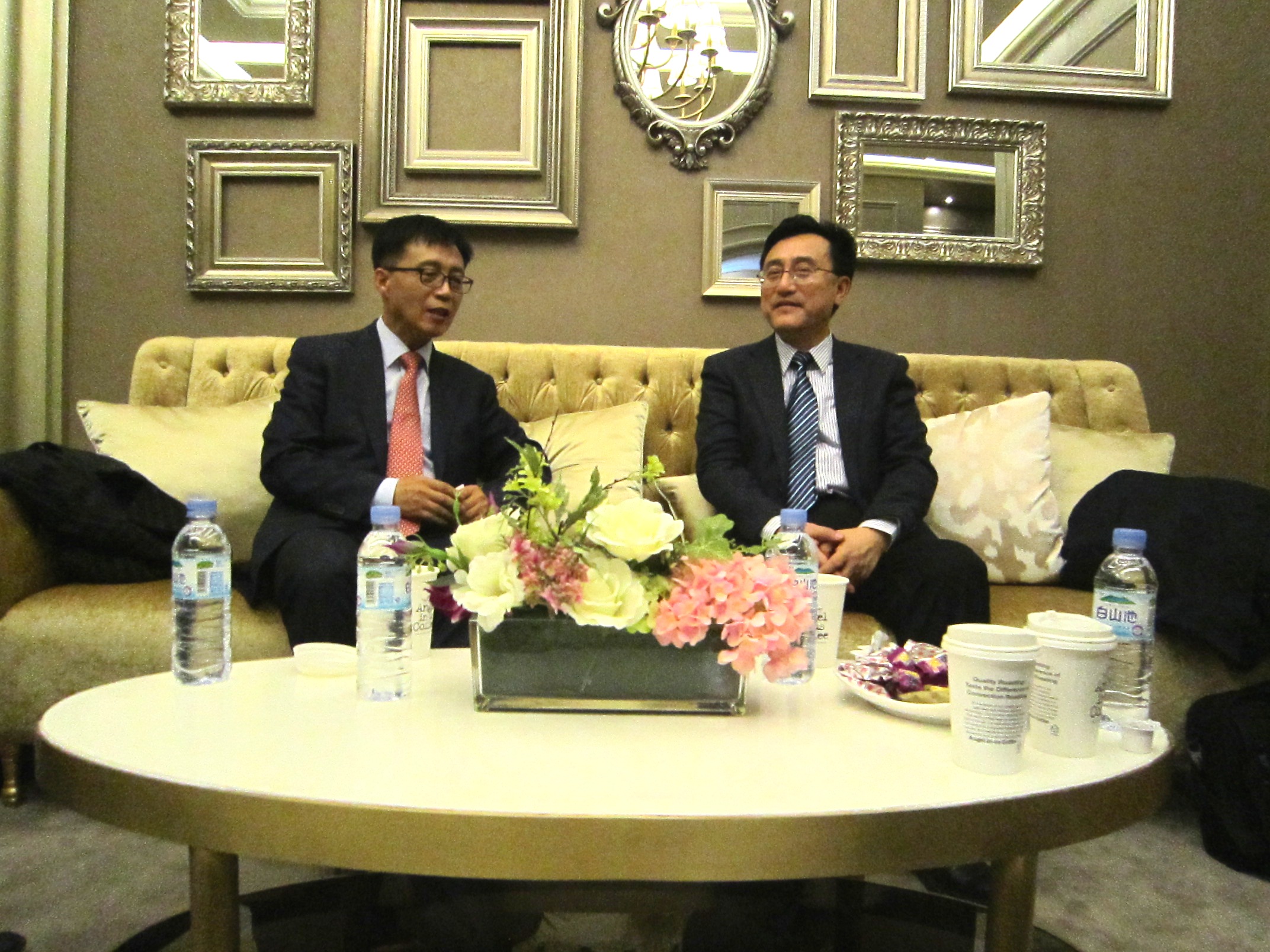 会议结束后,大连广播电视台、韩国中央日报记者等就中韩两国公共外交的必要性及日后发展的趋势等问题采访了刘德斌教授。