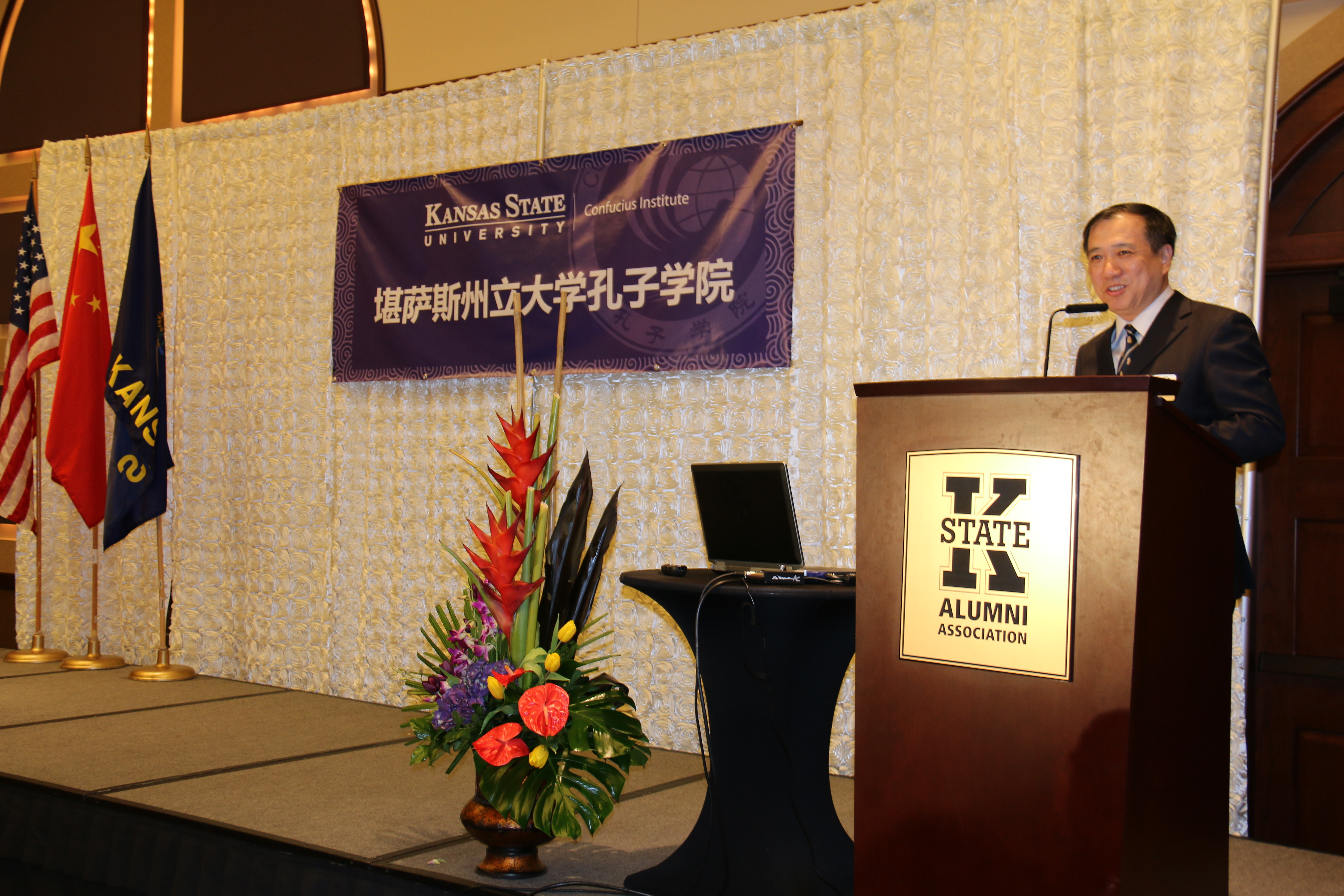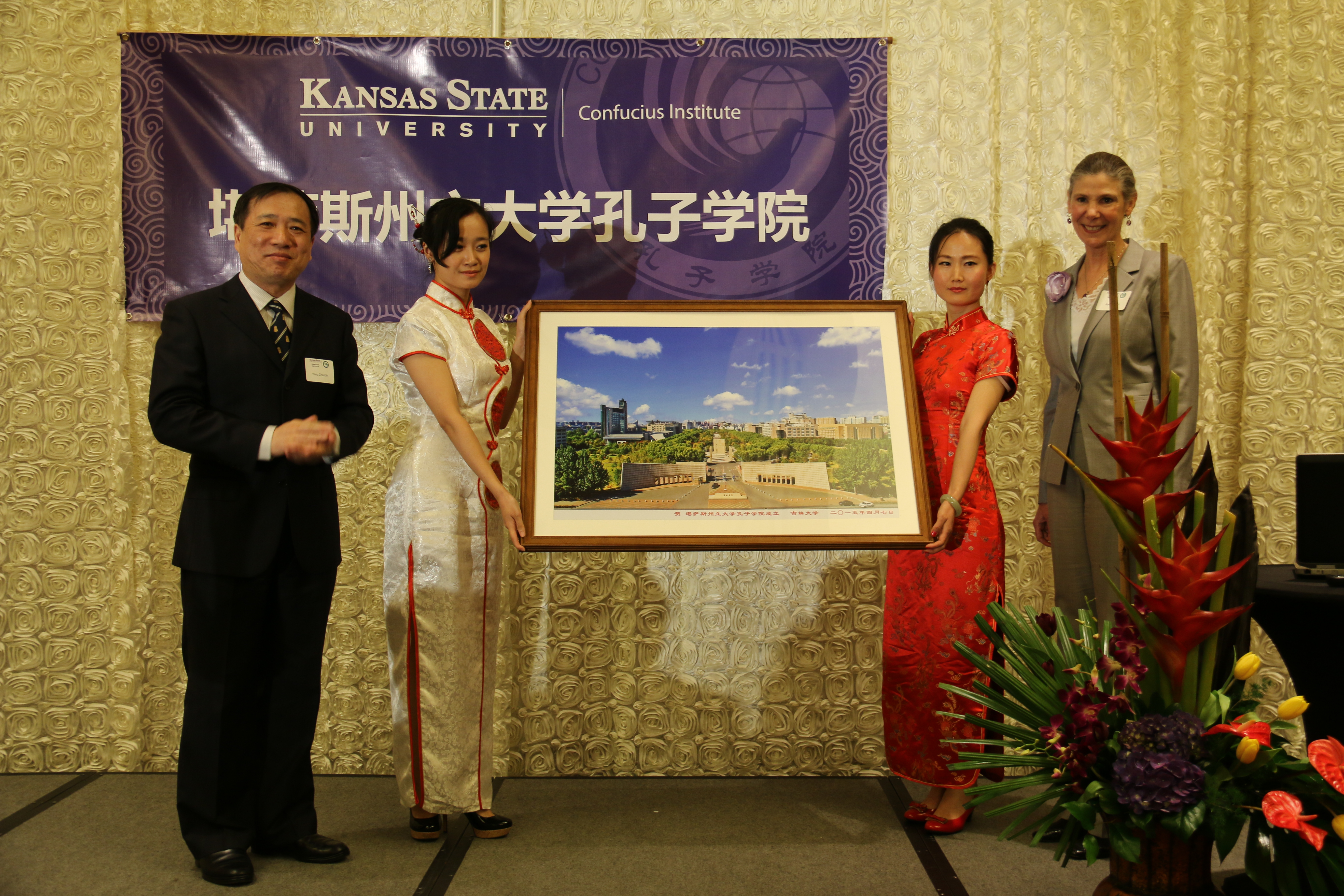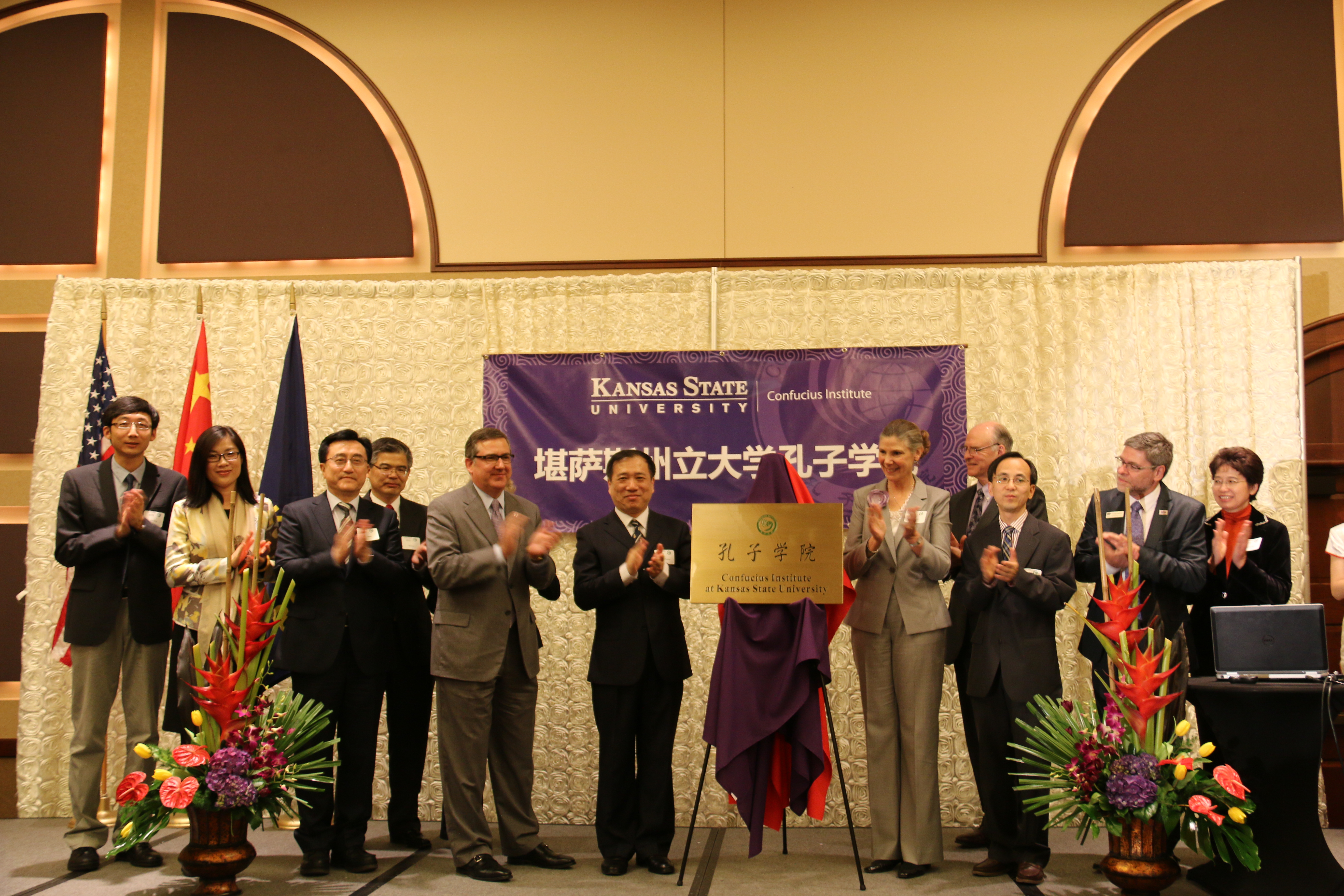 长柯克·舒尔茨(Kirk Schulz)、教务长兼常务副校长艾谱莉·梅森(April Mason)、中国驻芝加哥总领事馆刘军副总领事、堪萨斯州政府代表等共150人参加了揭牌仪式。仪式由堪萨斯州立大学主管国际事务副教务长马萨罗·萨巴提斯(Marcelo Sabates)主持。国家汉办主任许琳专门发来贺信。