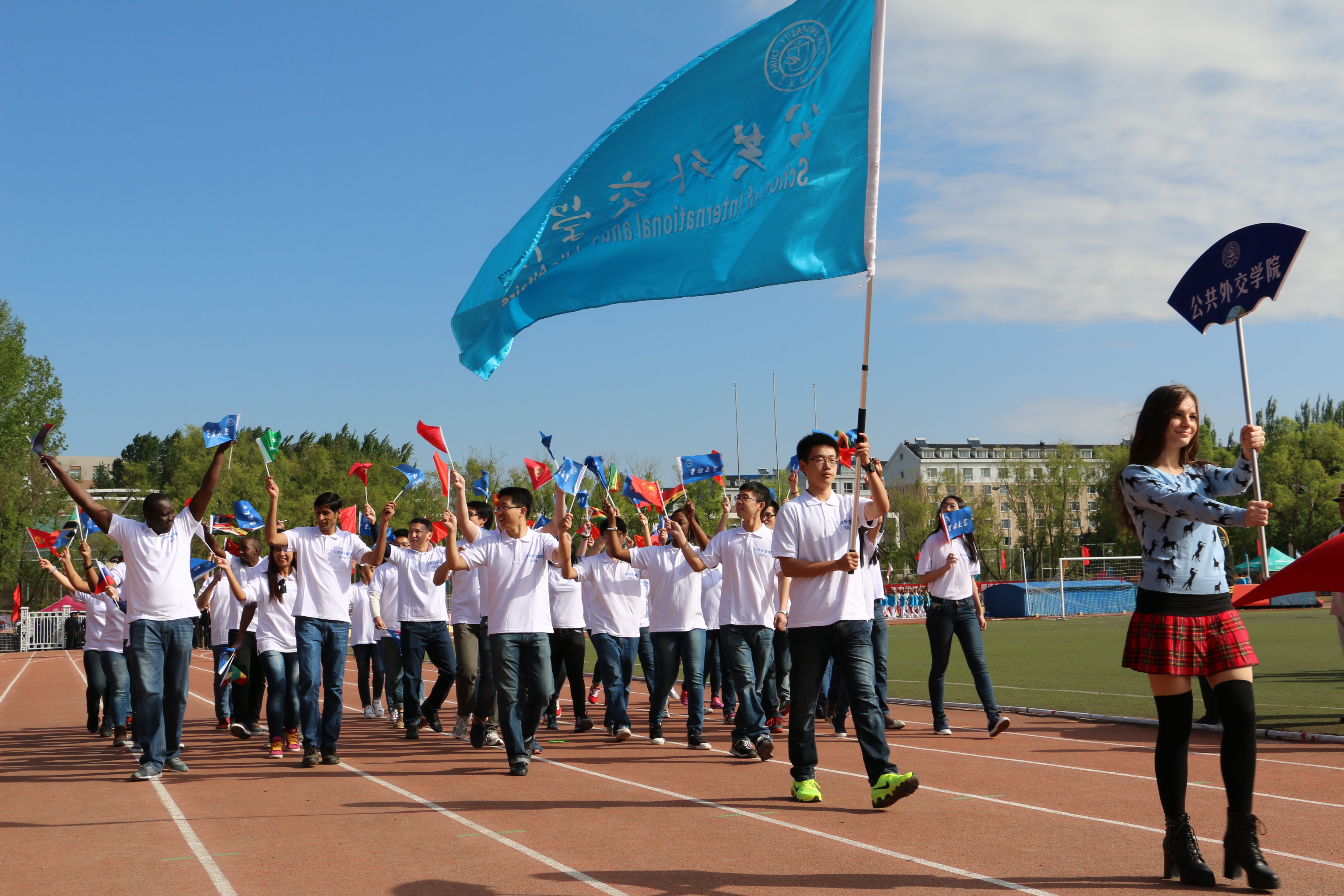 同学们起得比平时上课还要早,这全都是为了入场方队做准备。换上白底蓝字看起来高大上又小清新的院服,踏起飞扬的步伐,手拿各自国家的国旗和校旗,同学们激情洋溢地昂首走过主席台前。走在队首高举院牌的是来自乌克兰的留学生玛丽亚,她青春靓丽的身影引来观众席上的阵阵欢呼;旗手是体育委员梁鲁广,他飒爽的英姿显得分外帅气;方队的主体是由香蕉视频