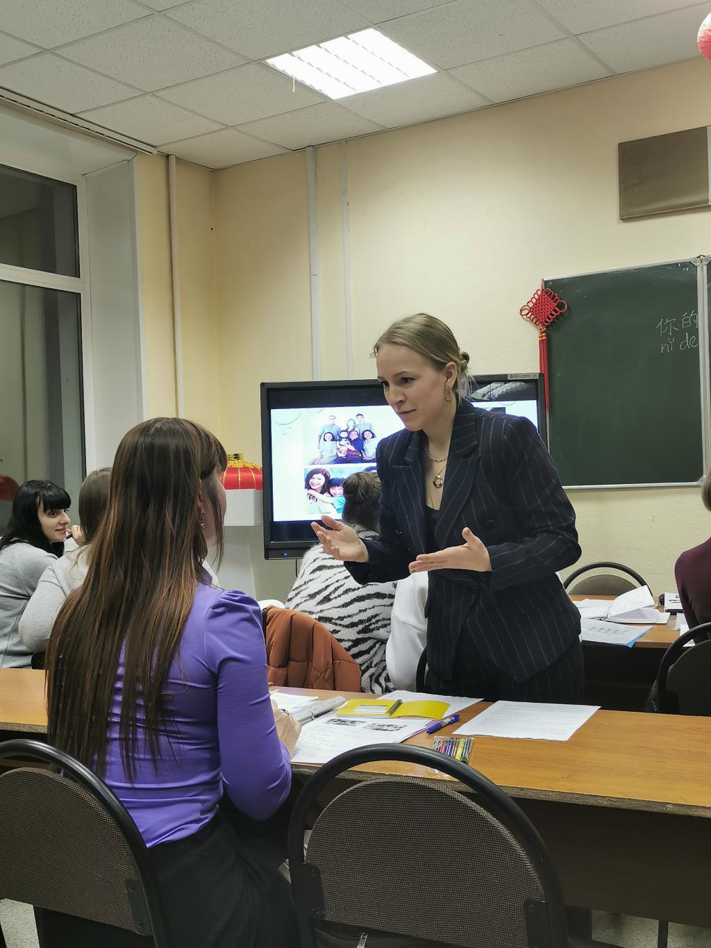 俄方教师代表和中方教师代表进行了座谈,乔蕊老师首先介绍了项目调研的基本信息和团组成员,与会教师代表也介绍了自己加入孔院结识汉文化的经历,同学们就孔院的教师选聘标准、硬件设施、教学内容、招生宣传办法、文化推广方式等向与会老师进行咨询,参与座谈的教师及单妮娜院长分别做了细致的解答。通过交流了解了梁赞孔院汉语教学的特色优势、生源情况、香蕉视频