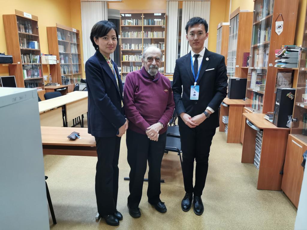 的课堂教学,分别是俄方扎普鲁德诺娃老师讲授的初级班汉语课程和中方志愿者教师魏榕辰讲授的高年级汉语实践课程。两位老师教学经验丰富、了解俄罗斯学生的特点、讲授内容生动形象,课堂气氛活跃。与此同时,乔蕊老师、刘治宸同学则在单妮娜院长陪同下拜访了梁赞国立大学德高望重的雅·玛·科尔格尔教授,他在梁赞国立大学孔子香蕉视频