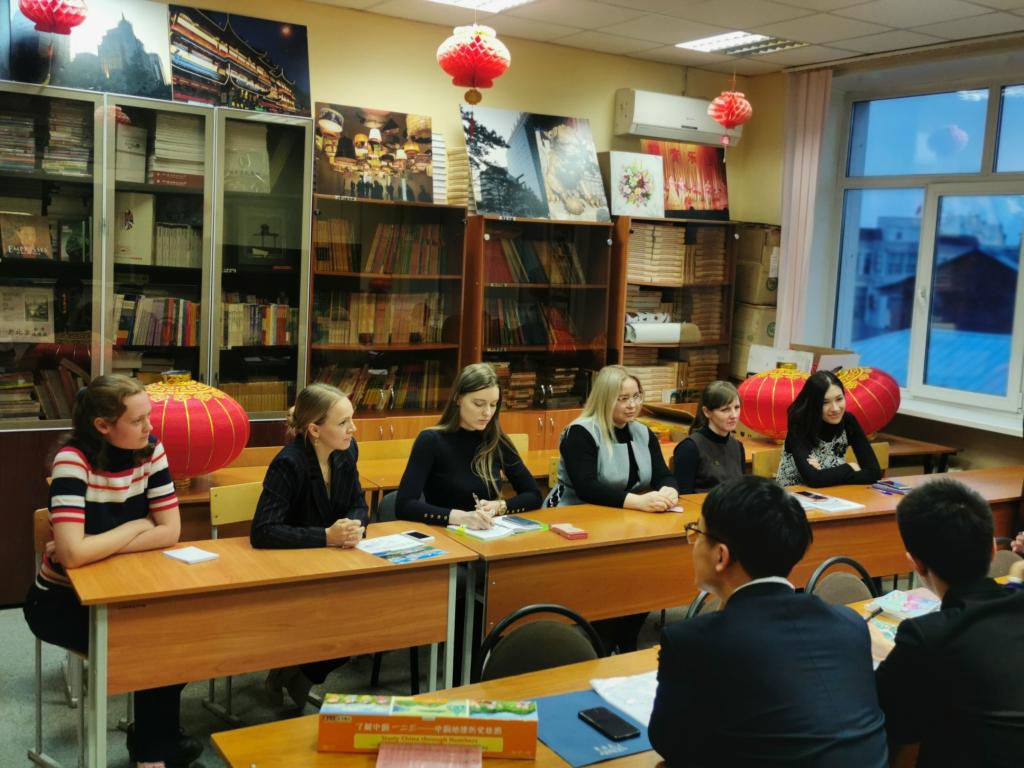学习和生活的经历。双方就感兴趣问题进行了互相交流,调研团主要就学生们汉语学习问题进行了提问,而俄罗斯学生则对中国文化及生活现状更为好奇,交流气氛十分愉快。