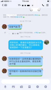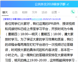 在线教学过程中,老师们进行了大胆的探索和尝试。陈曦老师在其《国际公共关系学》课程中结合课程的具体特征,将微课视频和直播教学结合起来,在学生视频学习之外隔周进行一次直播讨论互动课。乔蕊老师对学生进行了在线问卷调查,了解学生对课程的建议以及希望老师提供哪些方面的学习帮助,同时也以作业方式保证教学质量。崔悦老师采用每两周布置一次在线作业的方式,旨在通过批阅作业发掘学生对于知识点理解的偏差与难点,通过QQ与相关学生进行线下答疑。邹晓龙老师结合钉钉平台在直播方面所具有的流畅、功能完善等优势采用直播教学形式授课,授课过程中与学生上麦互动,直播后布置课后阅读任务与作业,并在下次课程进行作业点评,实时检验学生的学习效果。孙丽萍老师基于已经建设完成的国家精品在线课程资源并结合上传PPT和推荐书目到教学平台进行教学。
