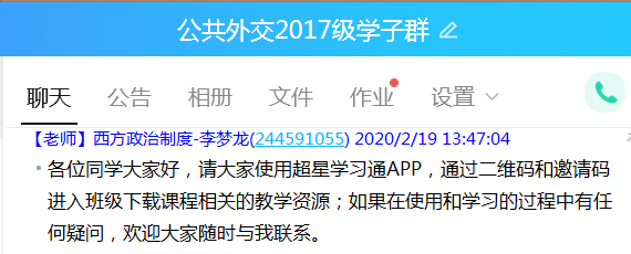 组建了疫情时期本科在线教学微信群,由孙兴杰副院长负责牵头在线课程申报及课程规划等相关工作,由本科教学与科研办公室主任郑广超组织协调相关工作,同时安排陈曦、崔悦两位教师作为对接教务处及超星平台技术人员的联络员,这一工作制度安排能够有效保证教师们在线教学工作遇到问题时有专人负责应对与解决。