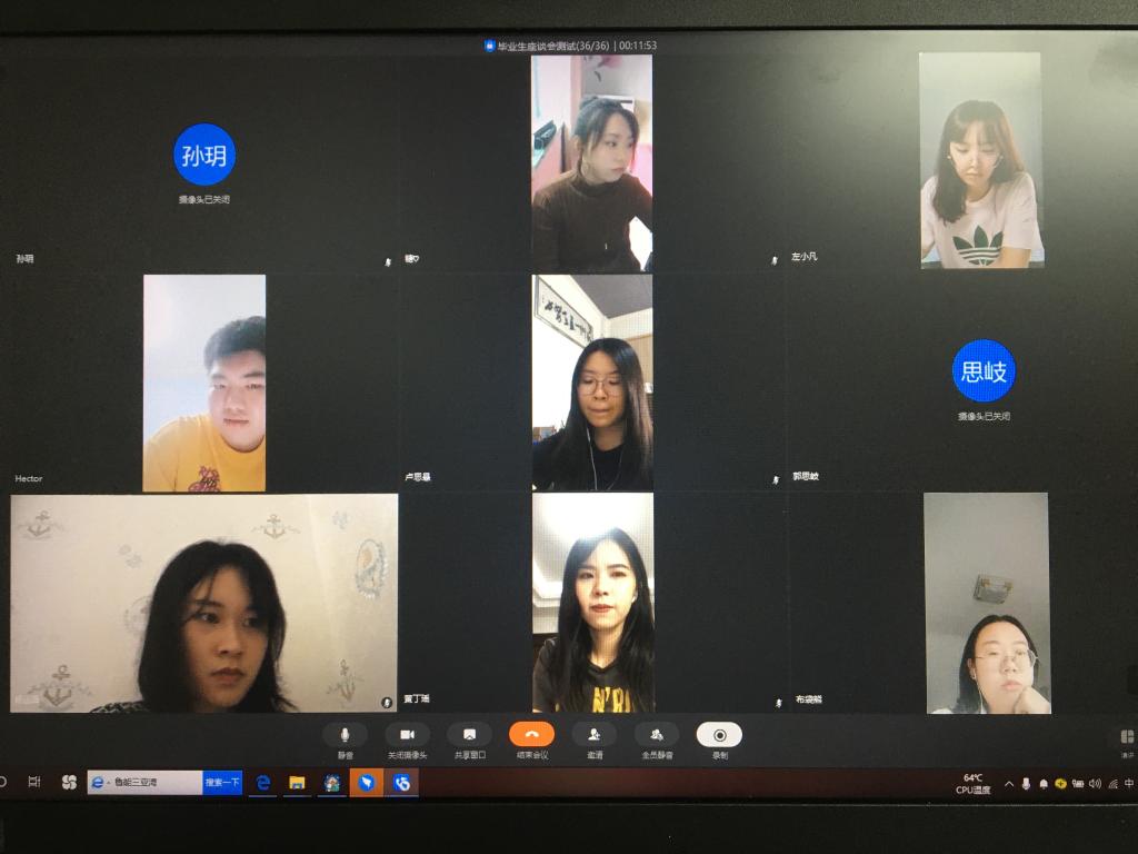 自上次集体活动之后,一晃已是半年。在这特殊的半年里,我们经历了新中国历史上最严重的一次疫情,更经历了史无前例的伟大战“疫”,可以说,这场防疫阻击战是新时代青年的成人礼。这次疫情之下,通过这样一场特殊的线上毕业生座谈会,师生久别数月再次相聚,每个人都十分激动,按捺不住与对彼此的思念和对四年大学生活的留恋,纷纷踊跃发言,座谈会在非常热切的气氛中完满结束。这场特殊的座谈会成为疫情期间本科毕业生与香蕉视频