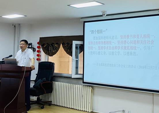 关于师德师风建设的重要文件,就重点内容结合实际案例一一进行讲解;就师德师风、思想意识形态、保密纪律要求及相关工作报备审批程序进行着重提醒。
