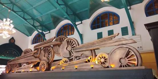 师生党员抵达中东铁路记忆馆。刚进入展馆,同学们就被记忆馆的俄式建筑风格所吸引,蓝色全木屋顶结构,色彩斑斓的玻璃花窗,脚下历经百年沧桑的黑色地砖,还有气势恢宏的车轮与轨道仿铜雕塑建筑,一起再现了中东铁路和绥芬河的百年历史。