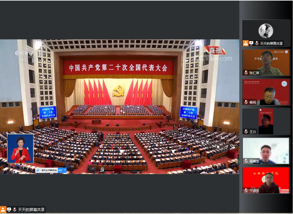 教工第一党支部组织全体党员和入党积极分子通过网络收看党的二十大开幕会直播,认真聆听报告。