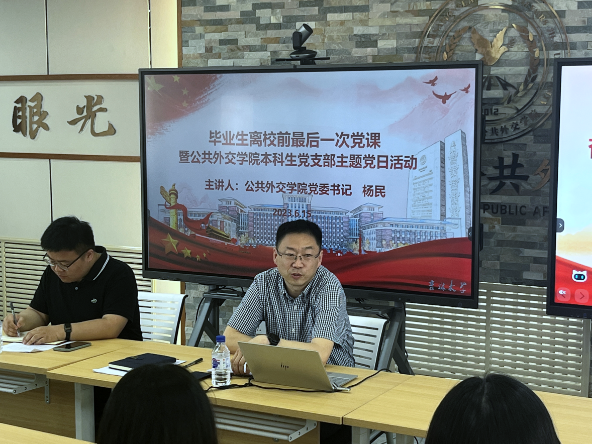 党委书记杨民老师进行主讲,由支部书记张淑艳老师主持,本科生党支部全体在校党员参加。