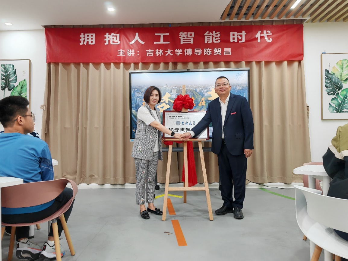 优秀生源基地”牌匾。陈贺昌老师以“拥抱人工智能时代”为主题向与会师生介绍人工智能的发展简史、战略地位和未来趋势,并介绍香蕉视频