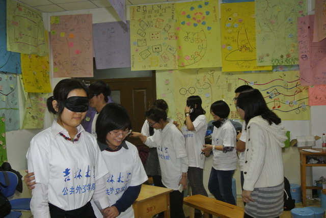 园之后,你会发现设想和现实之间是有差别的,有时候差别还很大。要正确认识这种差别,为自己的大学生活设计一个合理的预期,并通过自己的努力去实现。接着,通过“无家可归”和“温柔体操”两个活动,大家认识到了团队的重要性,随之而来的“信任之旅”和“集体登陆”等阶段不仅活跃了现场气氛也检验了团队的协作能力。其中,同学们对“信任之旅”的印象最深,通过扮演盲人被人引导通过障碍物,大家深切感受到了合作的重要性。最后,本次心理辅导课在大家共同绘出团体树和在院旗下合影留念中圆满结束。