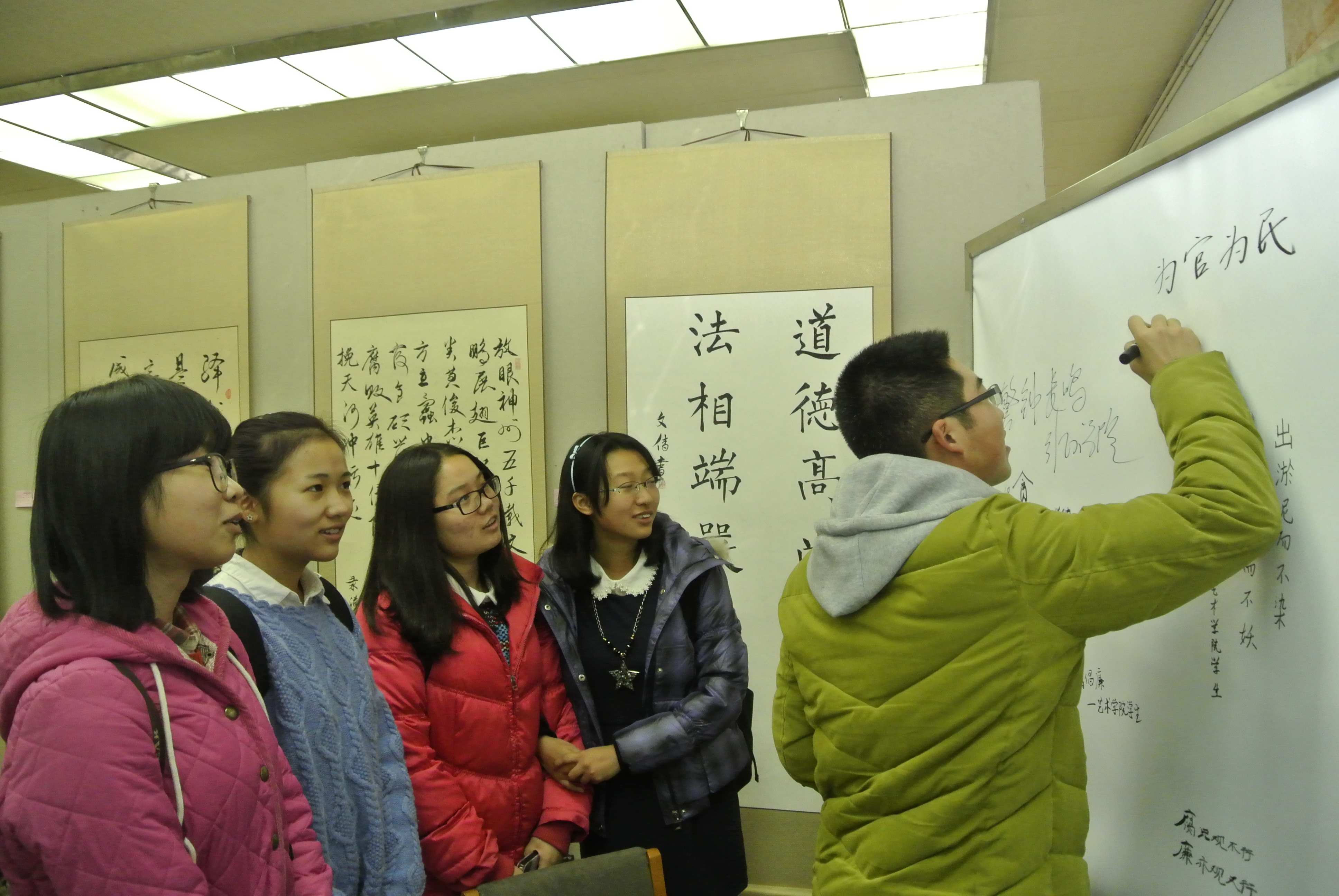参观期间,同学们通过一幅幅字画生动学习和领会了廉政精神。当看到讽刺贪腐现象的漫画作品时,同学们纷纷表示贪腐理应受到社会的谴责;当欣赏到廉洁的人物事例时,同学们认为廉政的行为是深得民心的,是该从青年时期就开始培养的一种优秀品格。参观结束后,同学们都深有感触,相互讨论关于廉政文化作品学习的心得。热烈的讨论后,一位同学代表在展示板上写下“为官为民,浩然正气”八个字,表达了香蕉视频