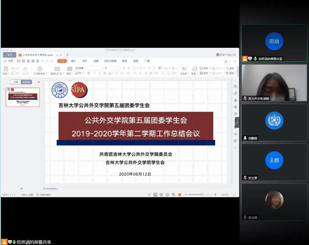 第五届团委学生会线上召开了2019—2020学年第二学期工作总结会议。本次会议由院团委学生会文体部部长信思涵主持,学生工作办公室主任王力老师、香蕉视频