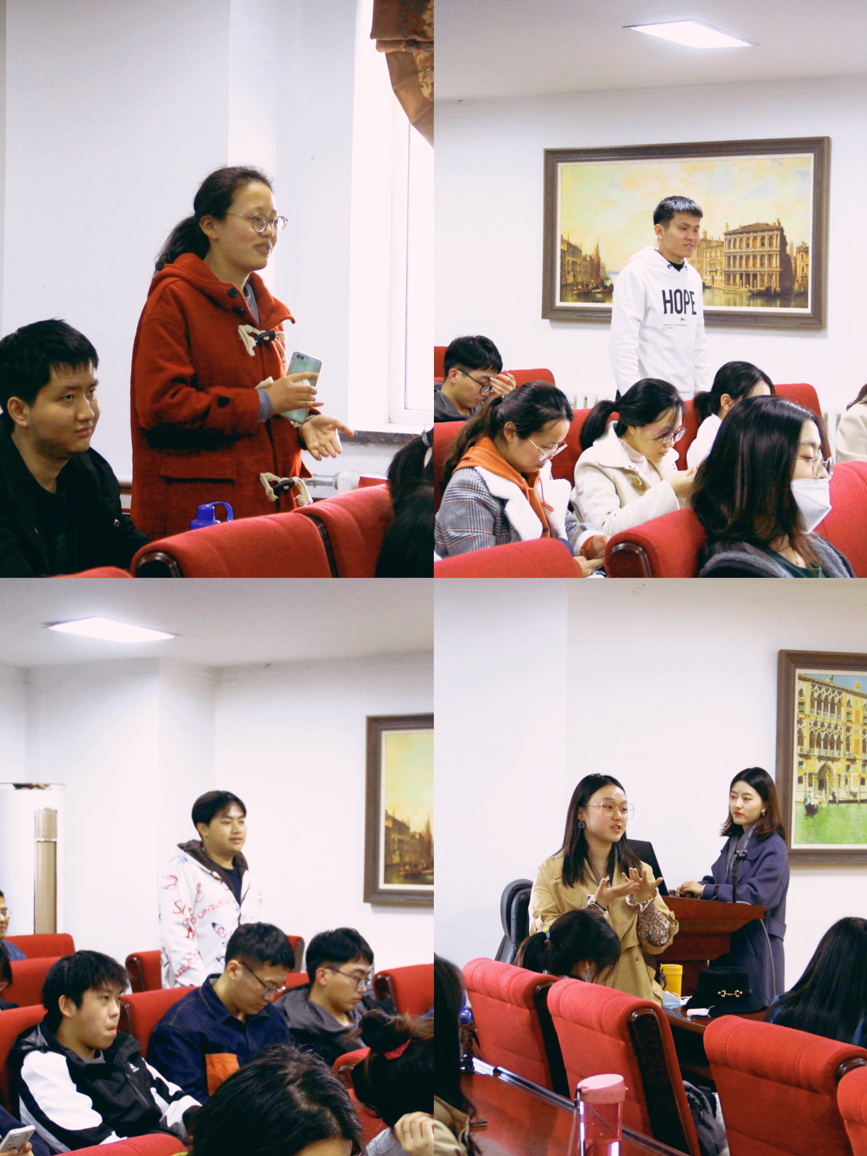的同学、老师们就是她大学最大的收获。在全场真挚且热烈的掌声中,四位同学结束了各自的心得分享。