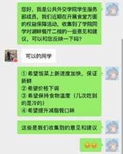 本期聚焦于校办食堂的就餐环境和菜品问题。首先,学生服务部的工作人员通过班长在各班广泛收集问卷,初步了解了同学们所关切的食堂问题。