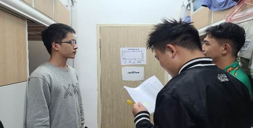 疫情防控规定,及时参与核酸检测。院研会学生代表检查了各个寝室的用电、用水安全及卫生情况,并与大家交流了近期生活和学习中的困惑,加强对新生的生活需求及心理状态的了解。
