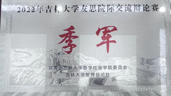 辩论队成员的共同努力。在友思备赛过程中,我们每个人都将课余时间利用到了极致,我们珍惜在一起进行思维碰撞的每一分每一秒,共同立论、改论,坚定自己的持方。作为一辩,我的任务主要是进行一辩稿的整理,为大家提供资料支持,这就需要我在讨论过程中认真聆听并及时记录大家的观点,在此过程中,辩论队成员出的模辩以及学长学姐的指导给予了我丰富的学习参考资料,使我实现了由一开始只会写地板论到以一辩的身份拿到佳辩的跨越式成长。在今后的过程中,我会继续精进自己的辩论技术,争取更好地进步。