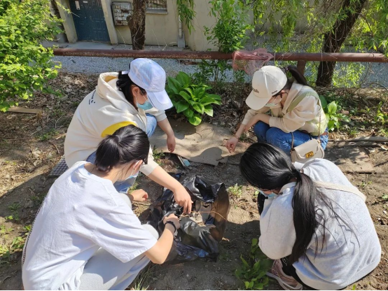 在本次清扫过程中,同学们分工合作,互相帮助,用铁锹打扫、聚拢角落的枯枝和塑料垃圾,并进行垃圾分类,在大家的默契配合下,田地焕然一新,生气勃勃。