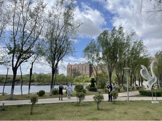 天色正好,太阳正晴,放风筝组的同学们团结协作,共同绑好风筝线。一切准备就绪后,大家环绕三佳湖公园,握好手中的线,根据风力、风向等多种因素调节线的长度,将风筝放飞。五颜六色的风筝在空中飘扬,承载着同学们丰富多彩的梦想。蓝天白云,晴空万里,且观清风托纸鸢,扶摇飞满天。