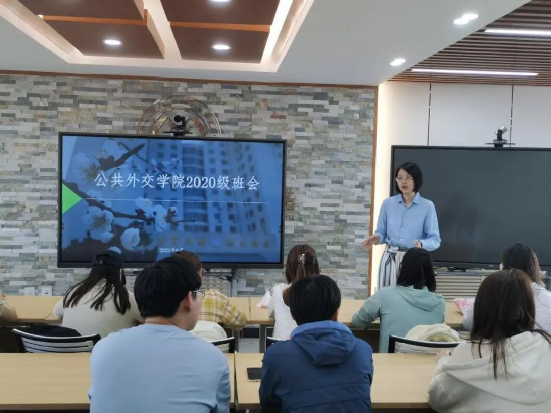 2020级外交学专业本科生主题班会于吕振羽楼818会议室顺利召开,辅导员张淑艳老师、班主任崔悦老师及2020级全体本科生参加了本次会议。本次班会旨在加强师生沟通、深入了解同学们近期的生活和学习情况,叮嘱同学们假期安全和诚信考试相关事宜,并为学年论文写作提供相关指导和建议。