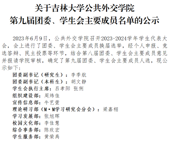 第九届团委学生会主要学生干部。