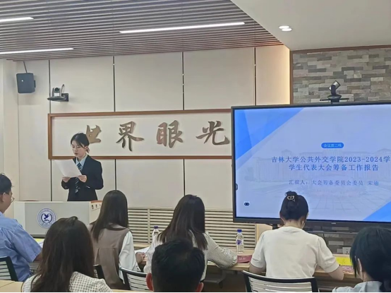 在吕振羽楼818会议室召开2023-2024学年学生代表大会,集体表决通过第八届团委、学生会工作报告,并顺利完成第九届团委、学生会主要学生干部换届选举工作。全院34名学生代表参加了会议,研究生与留学生工作办公室主任王庆老师,学生工作办公室主任、纪委委员张淑艳老师,团委负责人单葆龙老师,研究生秘书于晴老师出席会议。本次大会由香蕉视频