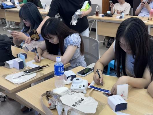 外交”“吉中吉”等印章为同学们留下专属印记并送上美好祝福。漆扇的一笔一划不仅展现了个人的艺术风采,更蕴含着毕业生对未来生活的想象与对母校的深深眷恋。