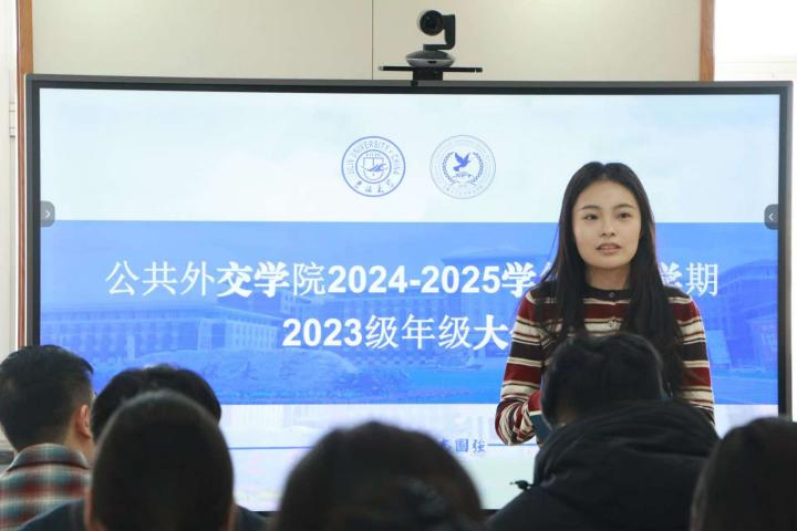 2023级本科生年级大会在吕振羽818教室召开。年级辅导员李季航老师,2023级本科生班主任迟也迪老师、高维龙老师及2023级全体同学共同参加本次会议。
