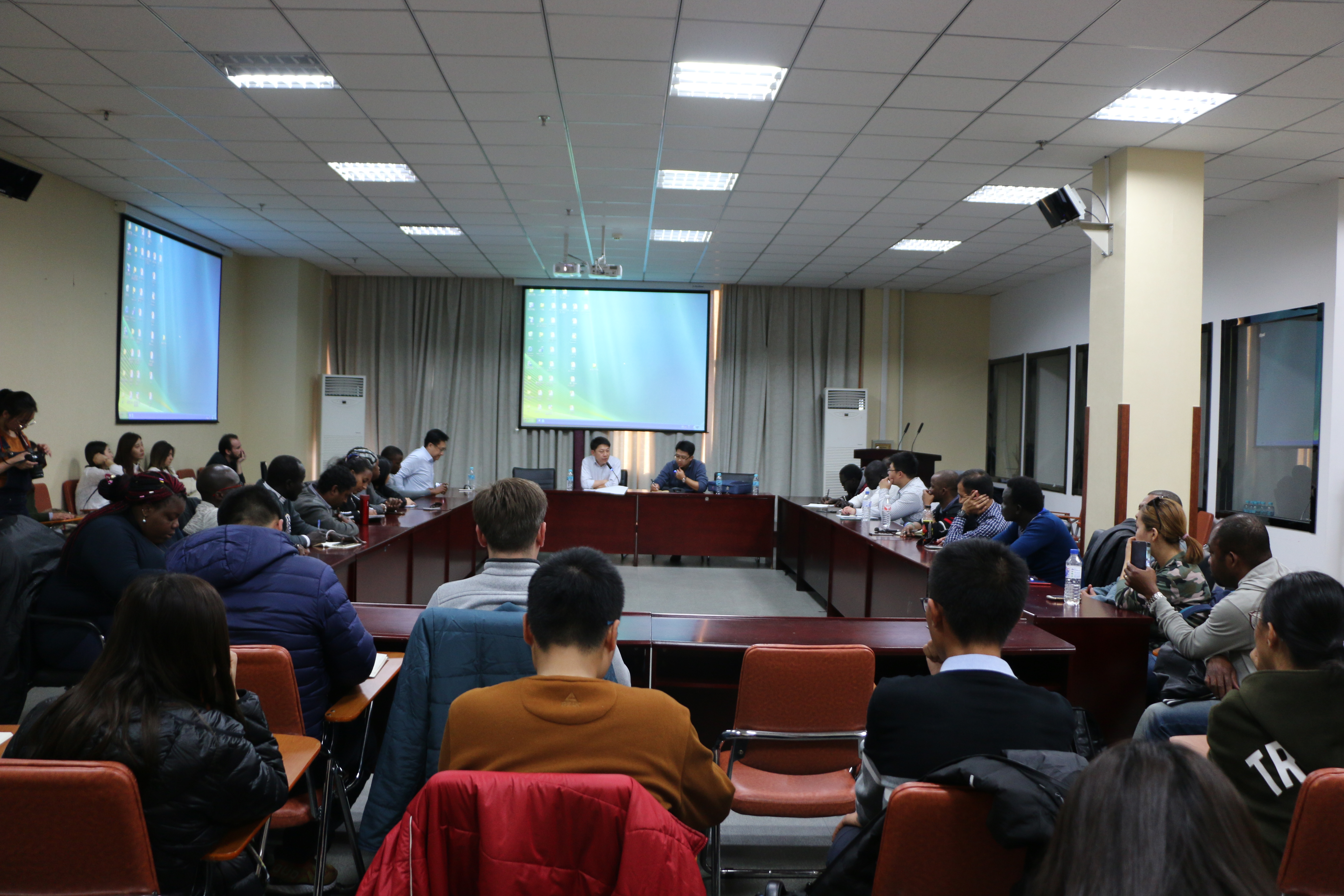 师生做了专题报告,就东北亚局势和中朝关系进行了细致的分析和讲解,并对中外学生提出的问题进行了耐心细致的解答。朴教授清晰的思路、理性的判断和风趣的表达更是让在场学生受益匪浅,也对朝鲜问题和东北亚局势有了更加清晰明确的认识。随后,香蕉视频