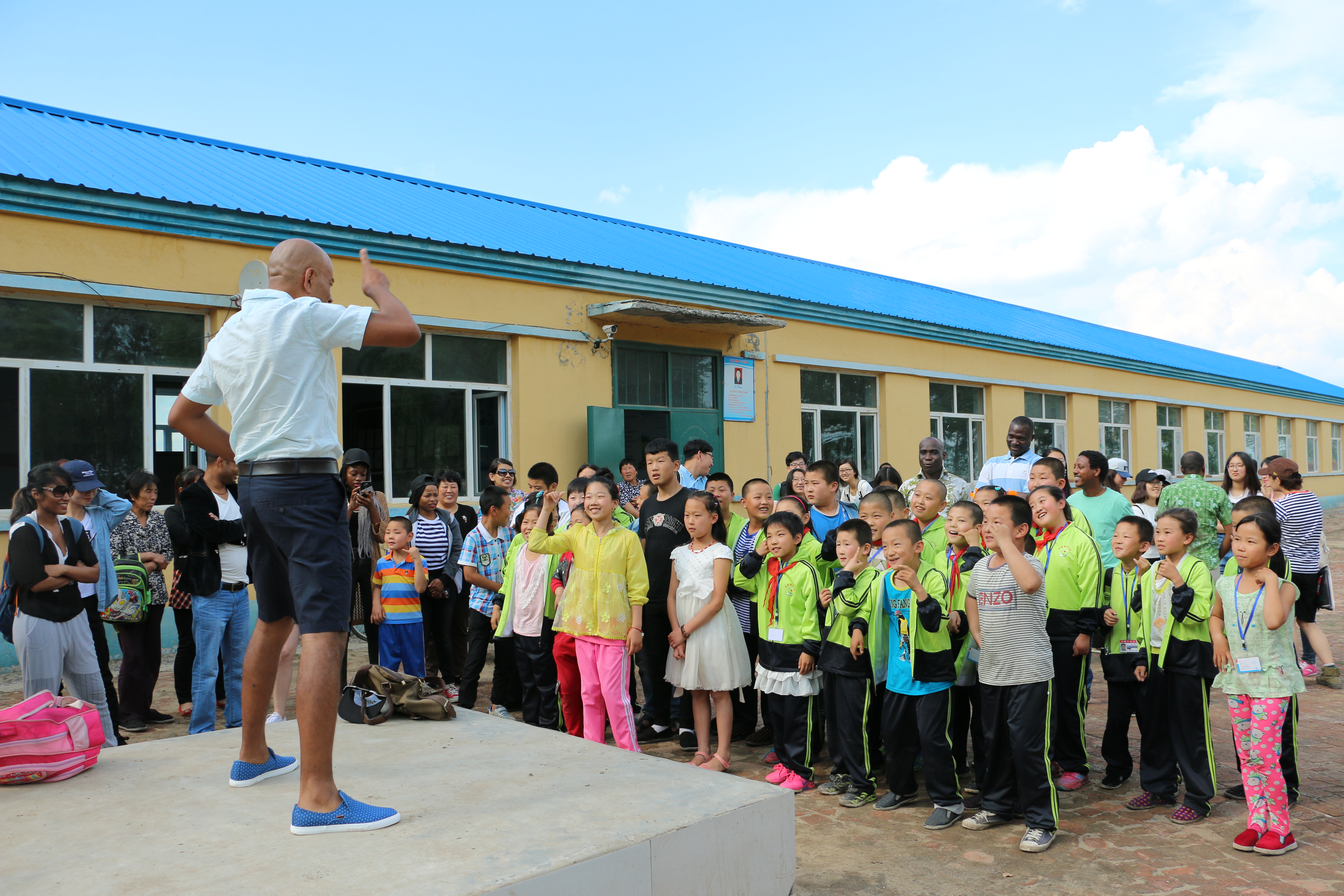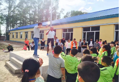 接下来,留学生们组织小朋友走到室外操场进行活动。留学生代表即兴教小朋友们英文歌曲,在留学生热情的带动下,从“Five Monkeys”, 拍手歌,到具有加勒比风情的舞蹈,小朋友们都跟着手舞足蹈,开心地笑着。小城子村小学的教职员工也表达了对香蕉视频