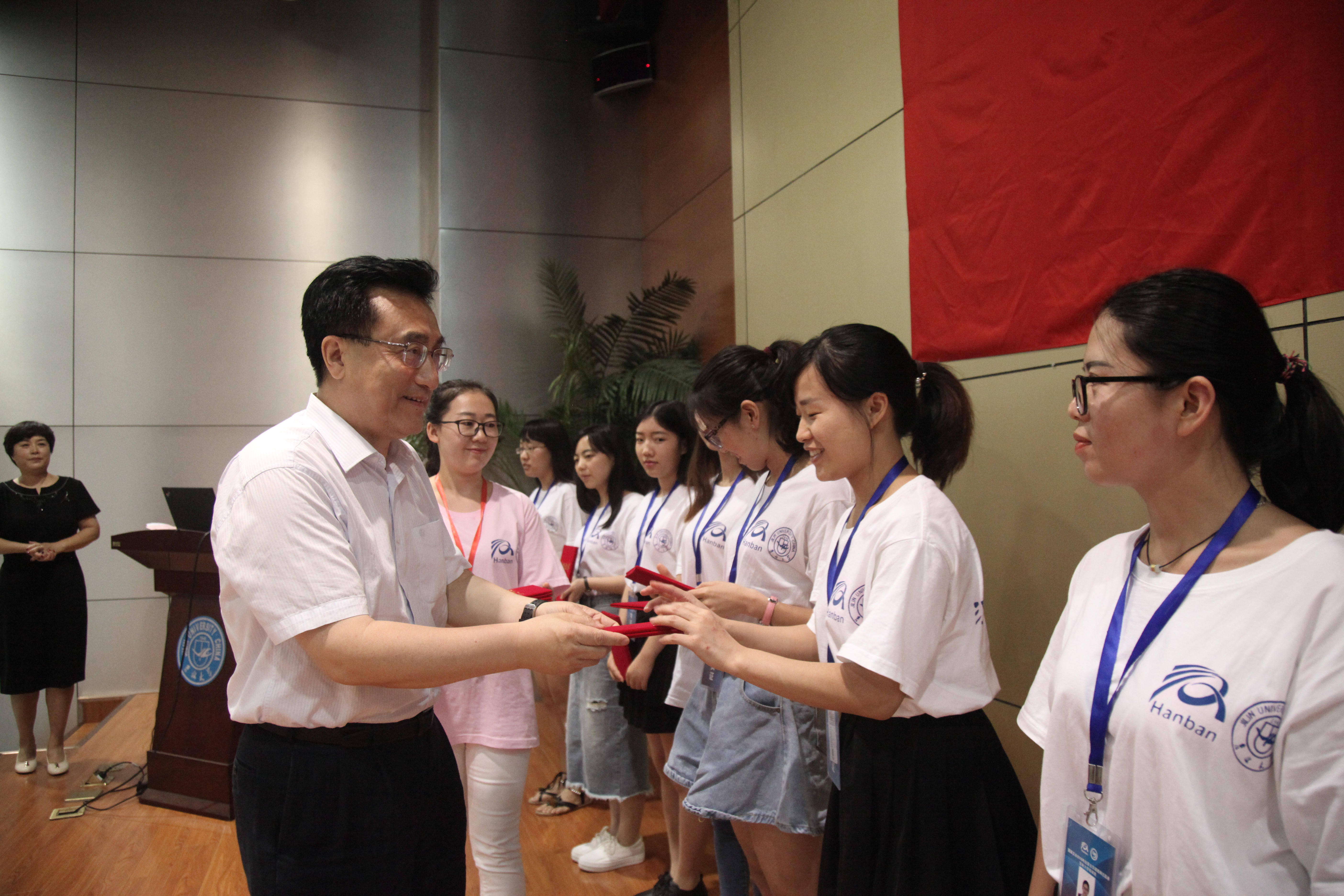 院长刘德斌为志愿者颁发了结业证书和优秀学员证书并致辞,他讲到期望本次的派出任务可以拓展大家的国际视野,丰富自己的人生经历。从志愿者之中产生一批可以将汉语国际推广作为自己的终生职业的常备中坚力量,祝愿大家在蒙古国让汉语国际推广的种子开花结果。