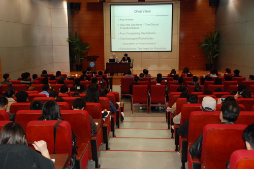 国际关系专业的中国学生和留学生作了两场专题讲座,题目分别是“国际关系学的再思考:以19世纪全球转型为视角(Rethinking IR in the Perspective of the 19th Century Global Transformation)”和“英国学派:一种被忽视的国际安全研究理论(The English School: A Neglected Approach to International Security Studies)”。