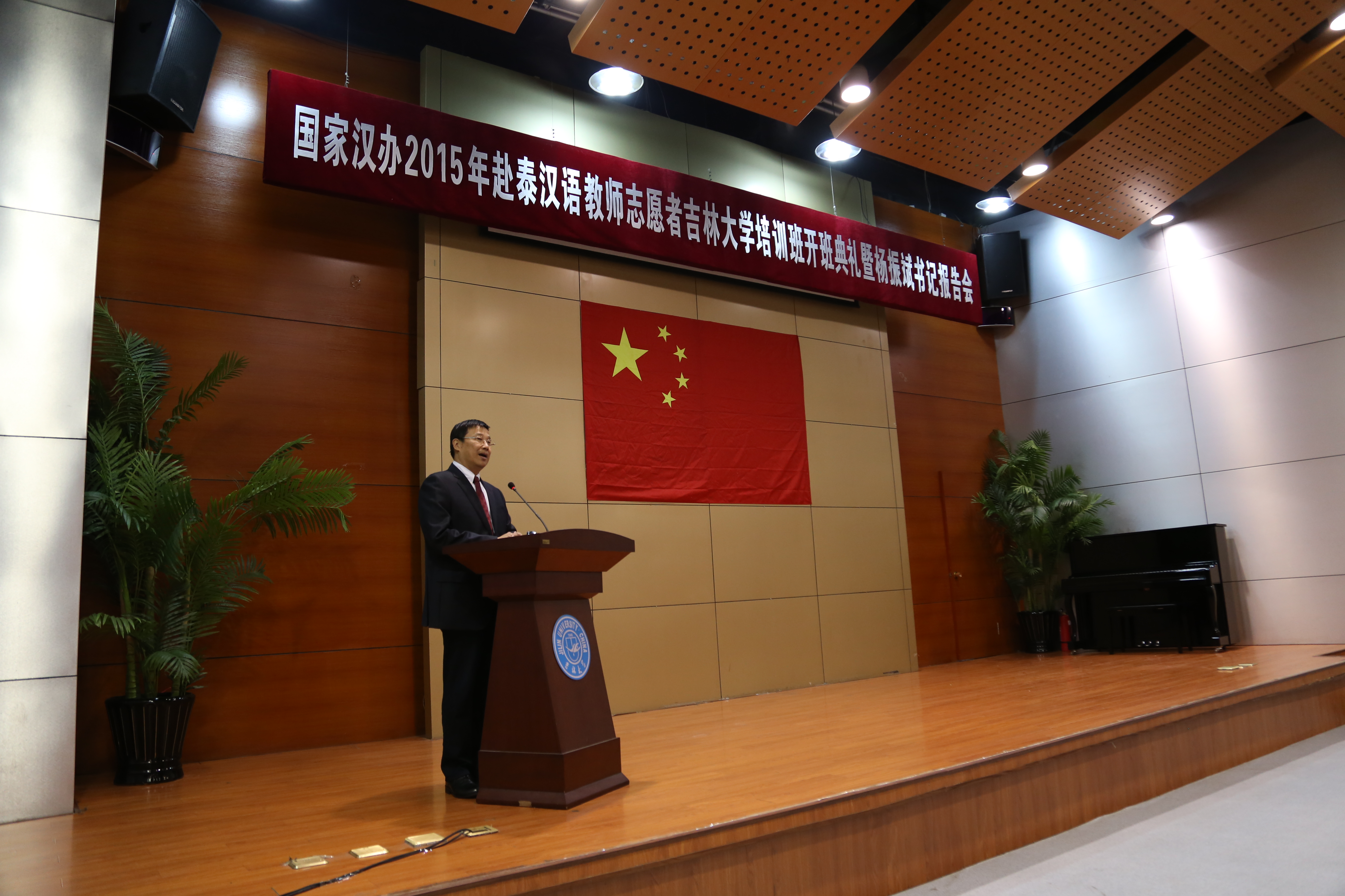 国际汉语教育东北基地学术报告厅举行。校党委书记杨振斌为培训班授旗并为培训学员作报告。香蕉视频