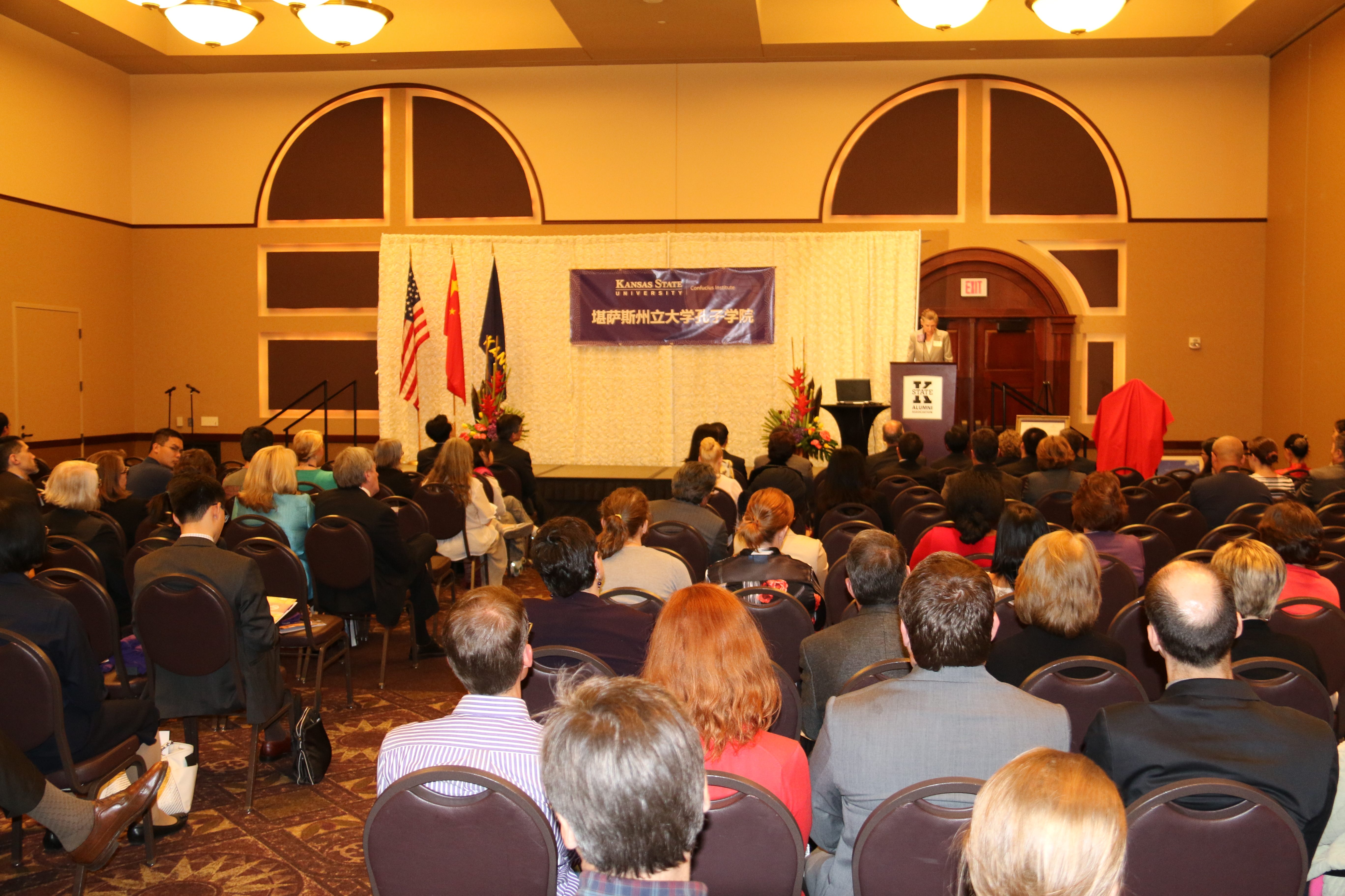 长柯克·舒尔茨(Kirk Schulz)、教务长兼常务副校长艾谱莉·梅森(April Mason)、中国驻芝加哥总领事馆刘军副总领事、堪萨斯州政府代表等共150人参加了揭牌仪式。仪式由堪萨斯州立大学主管国际事务副教务长马萨罗·萨巴提斯(Marcelo Sabates)主持。国家汉办主任许琳专门发来贺信。
