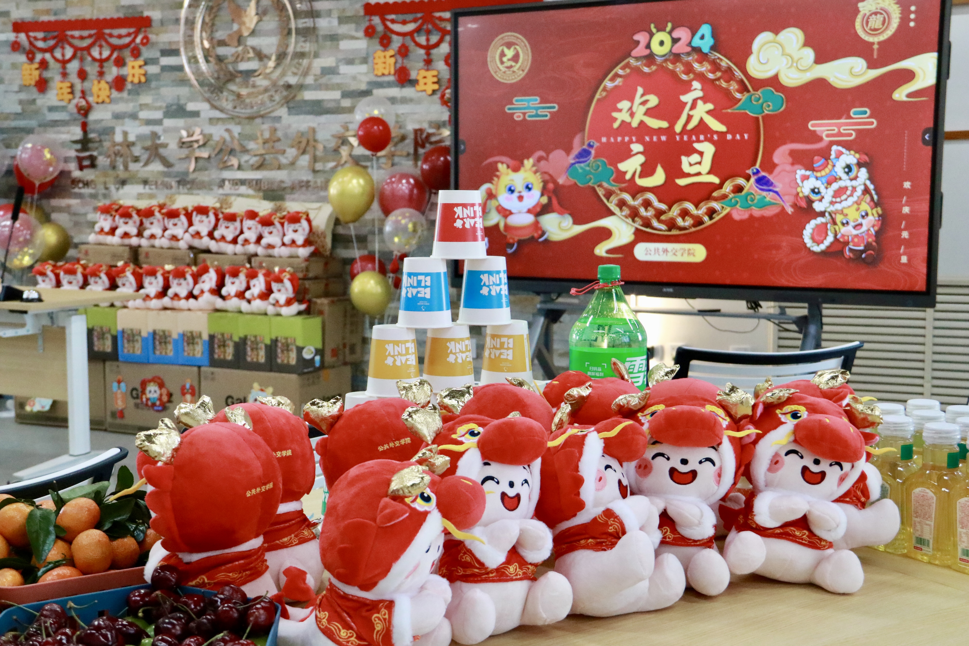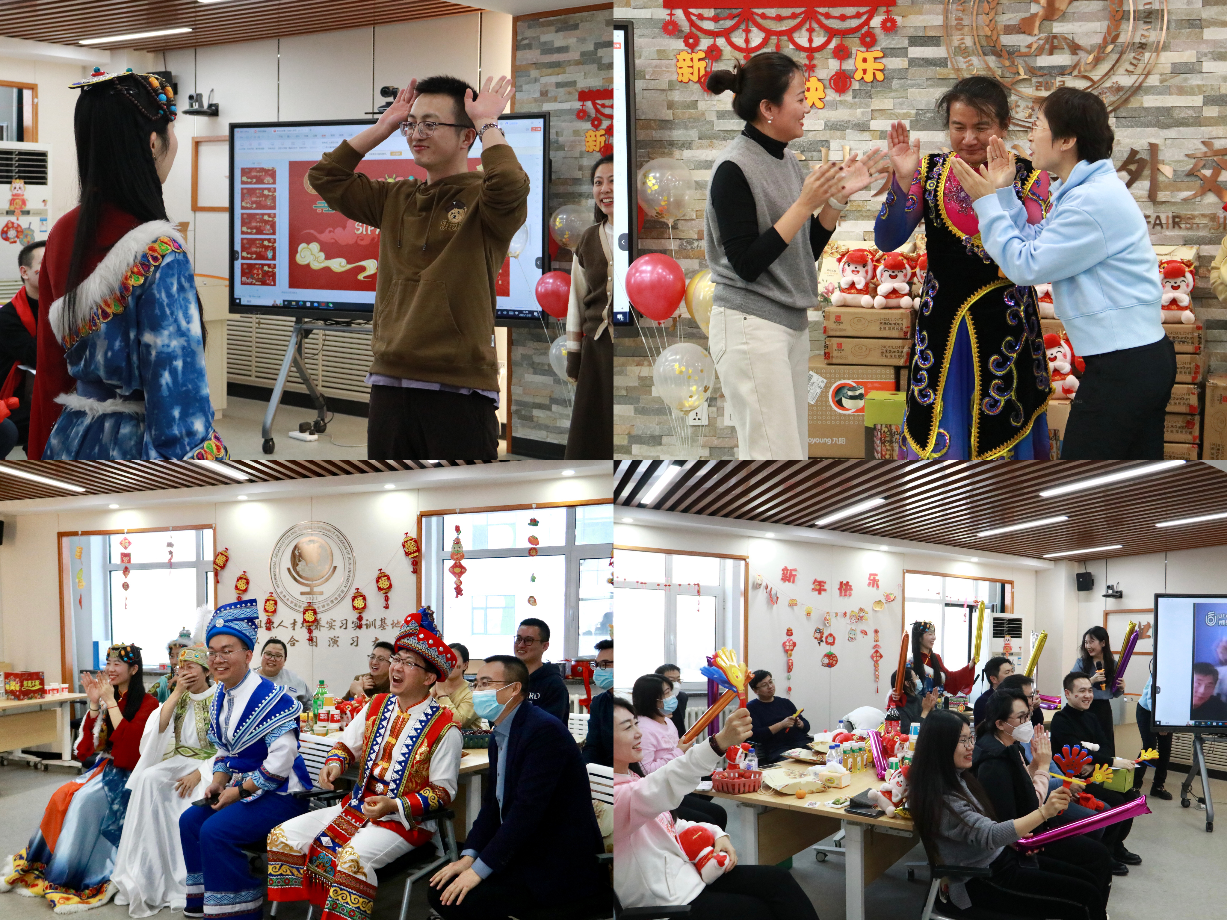在中心校区吕振羽楼818室举办“璀璨外交 温暖启航”2024年教职工新年联欢会。活动现场气氛热烈、暖意融融。香蕉视频