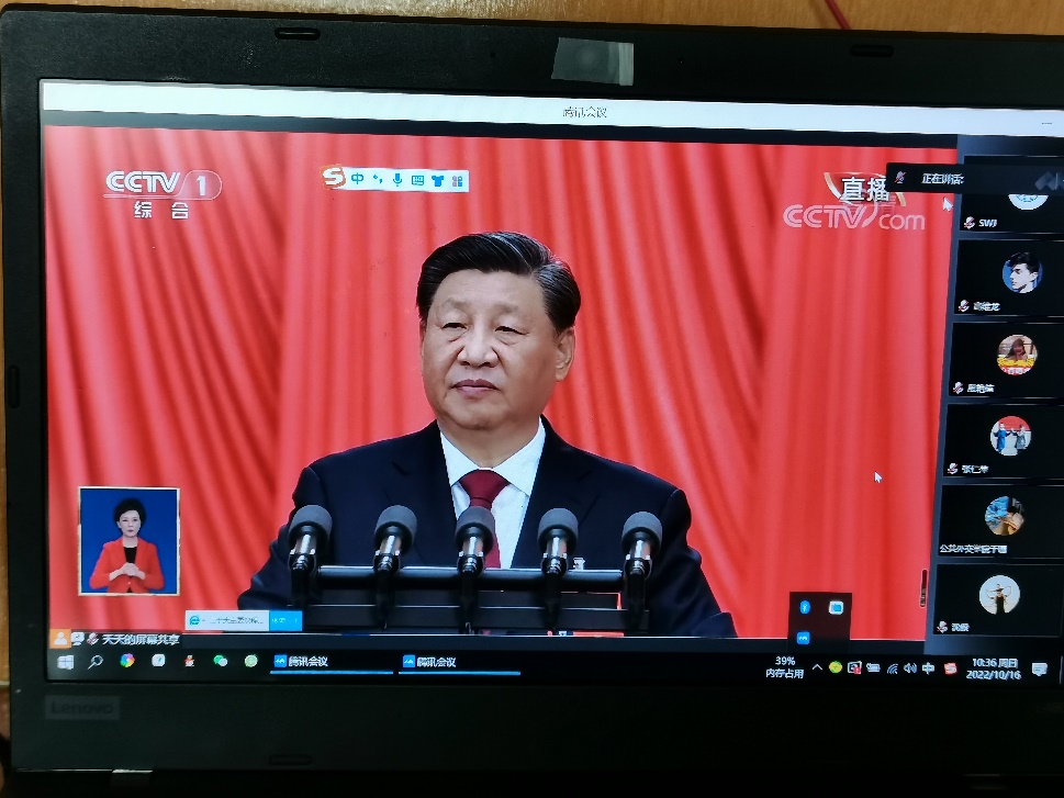 教工第一党支部组织全体党员和入党积极分子通过网络收看党的二十大开幕会直播,认真聆听报告。