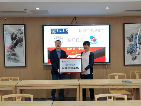 招生宣传座谈会和授牌仪式在福州三中会议室举行,座谈会由福州三中副校长杜开颜主持,教务处主任万青黎,11级校友三中教师杨中闽参加座谈会。