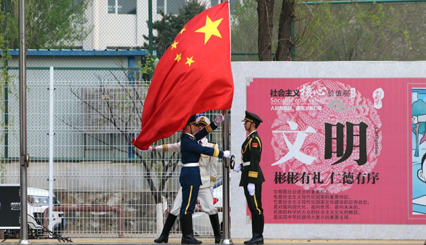 五四青年节升国旗仪式。