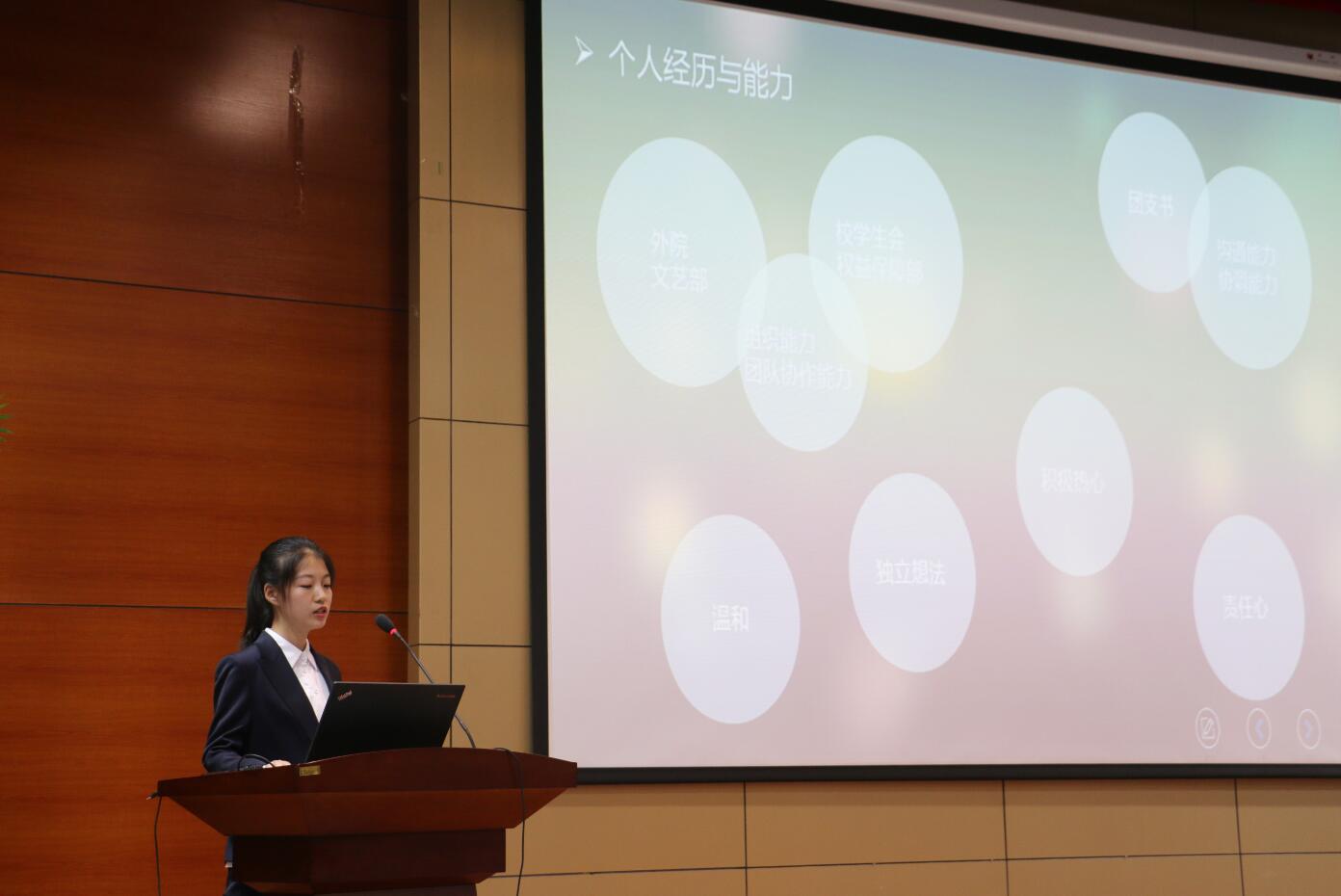 本次竞选的职位有学生会主席、团委副书记以及各部的部长。参与竞选的同学们逐个上场发表6分钟左右的竞选演讲,分别展示各自的能力并总结自己一年的学团工作,同时还提出对未来团委学生会建设的设想。他们都对自己充满了信心,演讲热情饱满,既展现了自己的能力与才干,也赢得了老师与同学们的肯定。