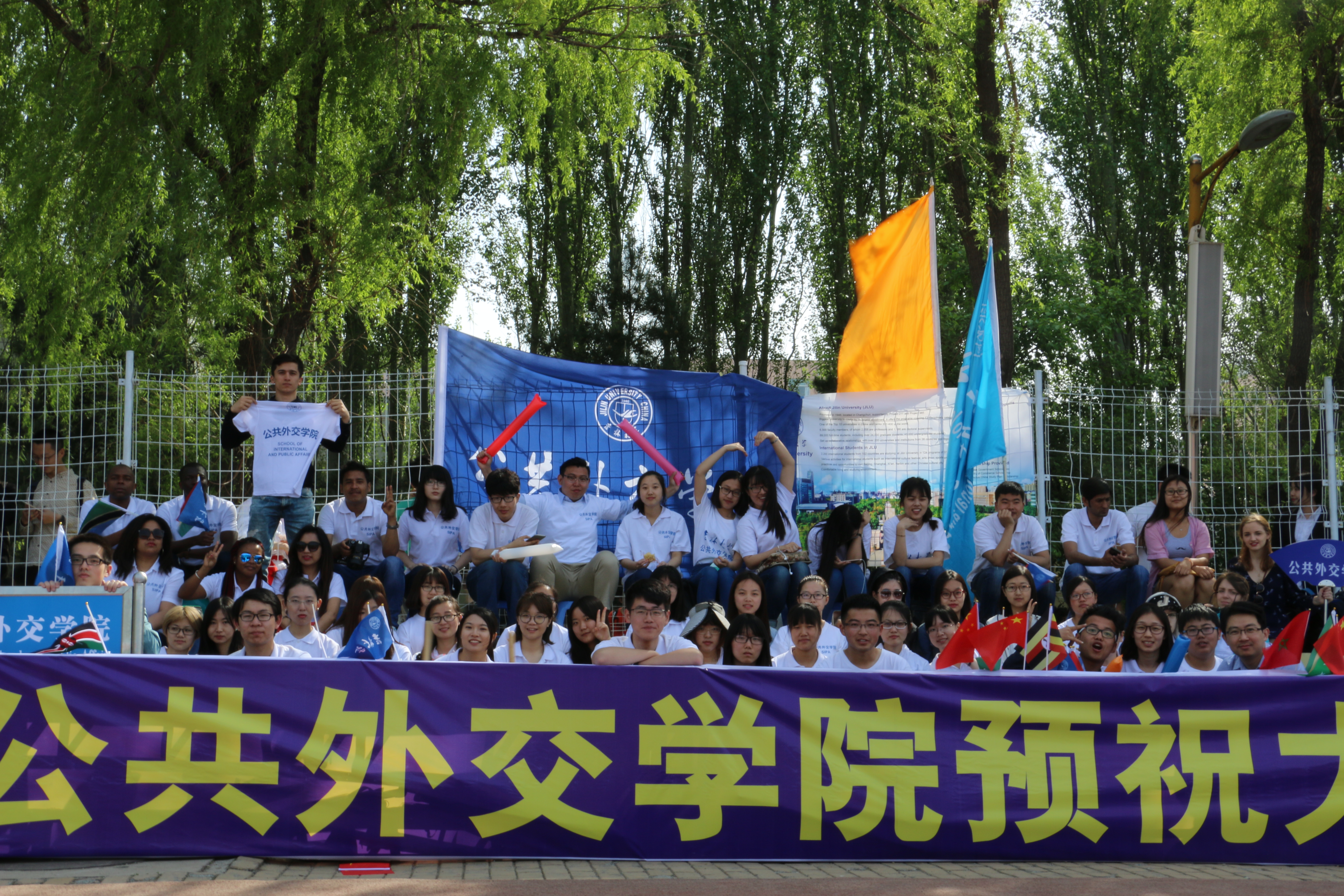 方队因中外学生结合而独具特色。中英结合的口号,各具特色的国旗,整齐鲜明的服饰均给在场观众留下了深刻的印象。
