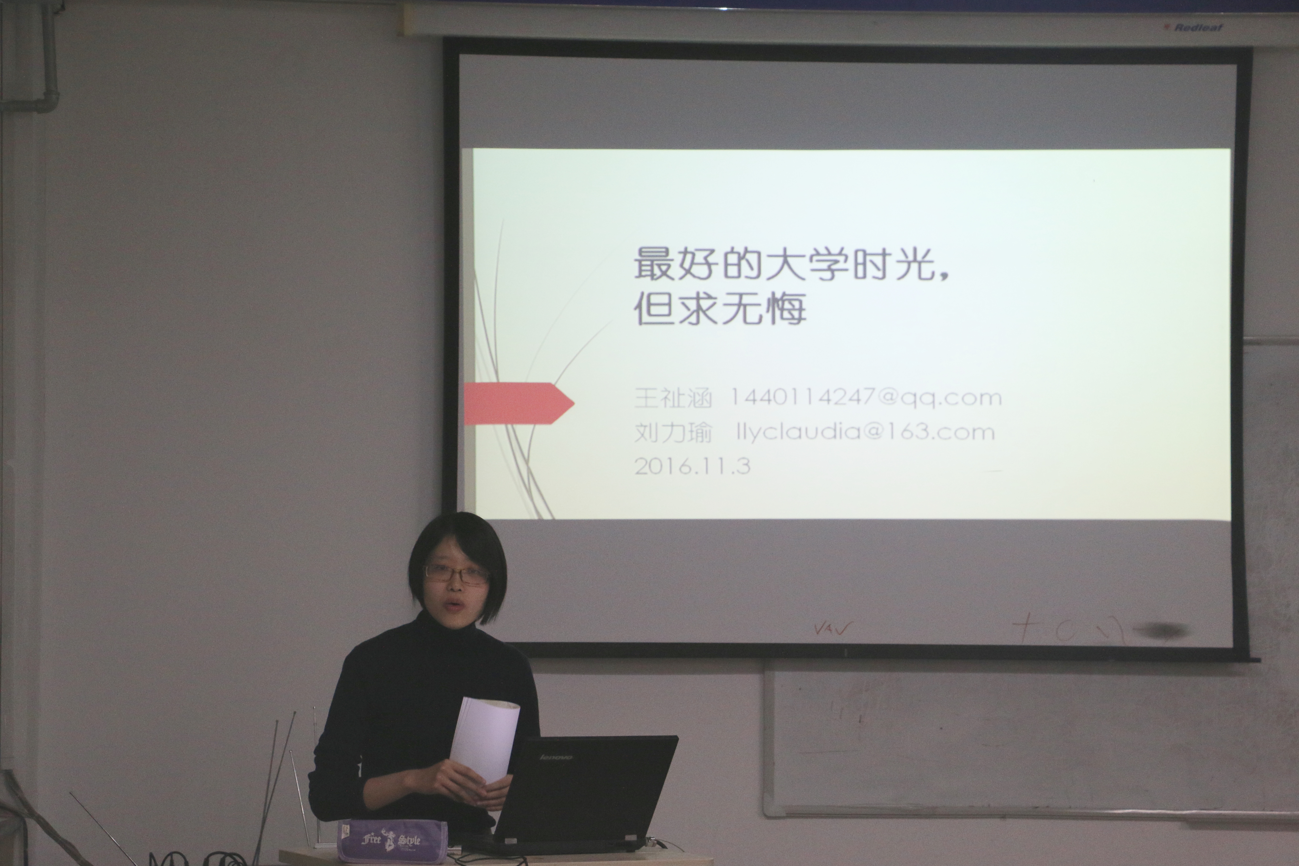 会上,王祉涵学姐就大家可能存在的对于大学生活的困惑分成三部分给出了自己的见解,即了解自己想要的,确定自己能够付出的,坚定自己决定好的。因为只有真正知道自己想要什么才能确认自己的兴趣点,从而为以后就业方向奠基;只有肯下大决心付出,并披荆斩棘无所畏惧才能将自己的梦想坚持到底;只有坚定自己的理想信念才能最终获得成功。继而,学姐简单说明了一下如何分配学习和社团活动以及娱乐的时间问题,对大家普遍的困惑一一做出了解答。