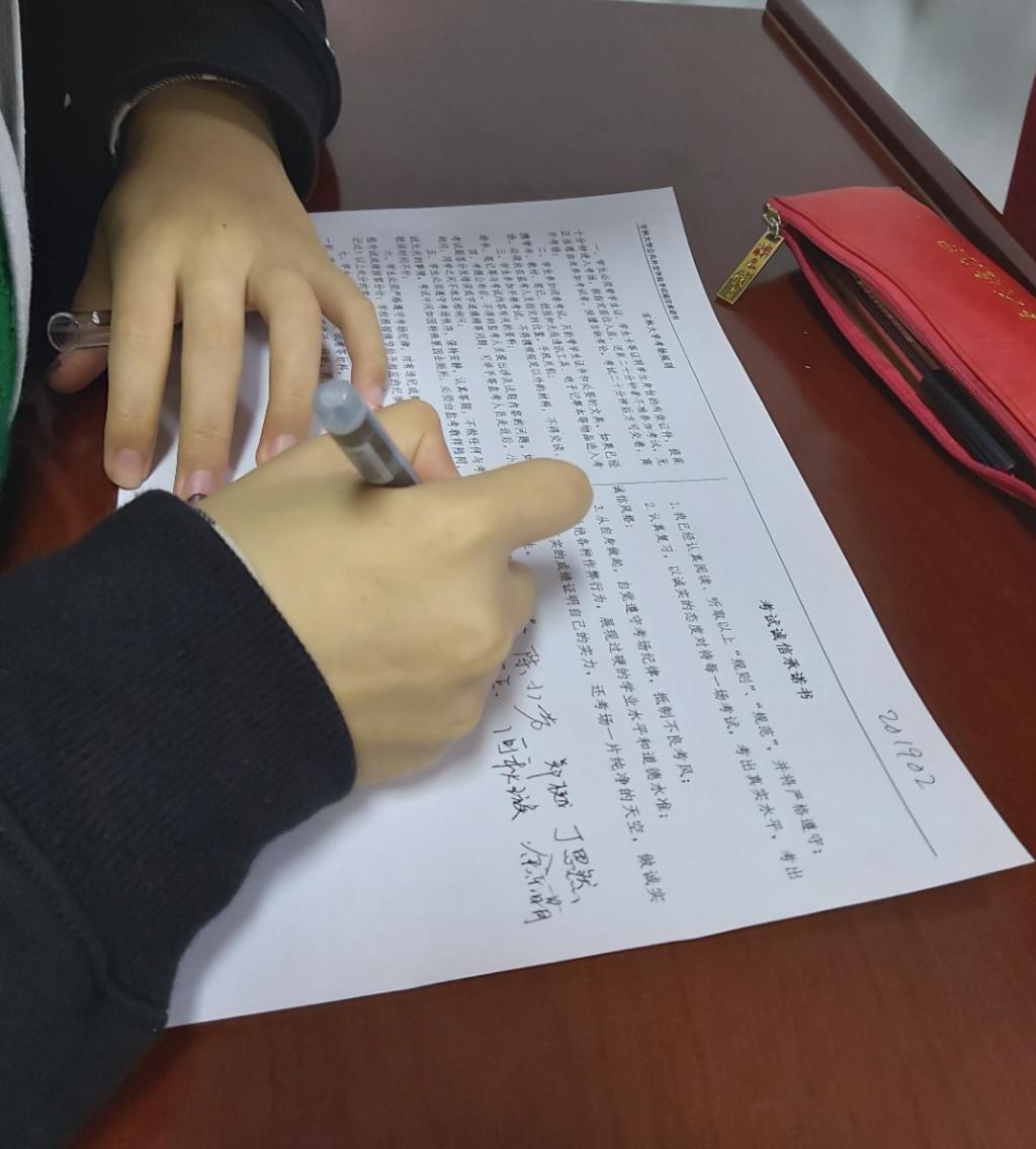的相关安排进行了说明与解读。在王力老师的组织下,参会同学认真学习考试条例后,郑重地在诚信保证书上签下姓名,大家表示将身体力行,共建严肃考风。会上还完成了2018、2019两个年级关于2020年党员拟发展对象的民主测评工作。