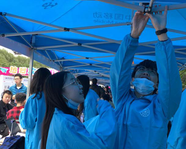 迎来了新生报到高峰期。自早上七点开始,迎新志愿者们已在五月花迎新工作站、大巴乘车点、学生公寓的各个岗位做好了工作准备,迎接新同学的到来。