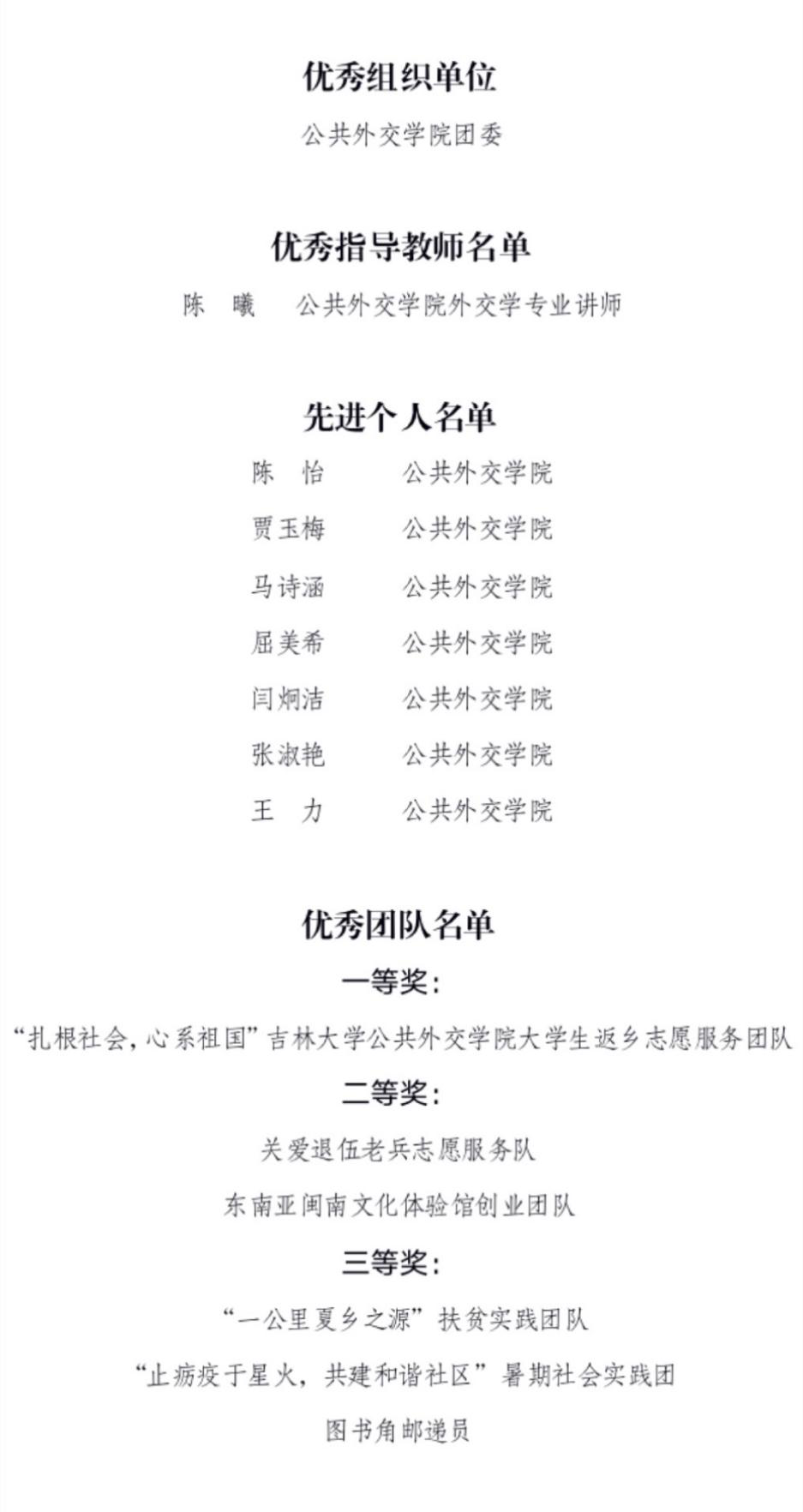 寒暑假社会实践活动优秀组织单位;陈曦获优秀指导教师;陈怡等7名师生获社会实践活动先进个人;“扎根社会,心系祖国”香蕉视频