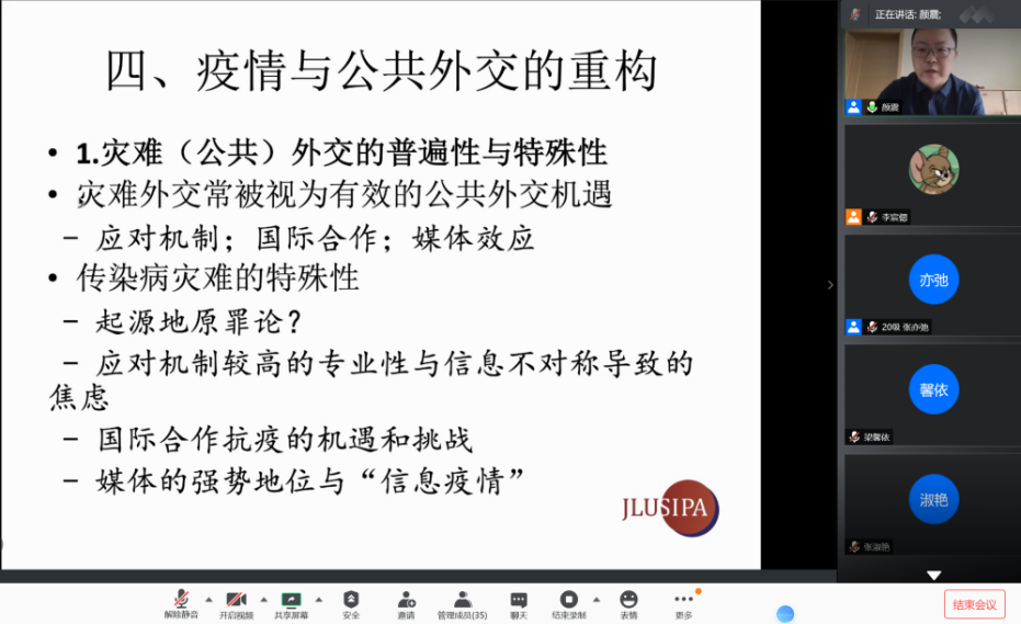 青年教师颜震围绕“后疫情时代中国公共外交的展望”这一主题,分享了他的看法和见解,并与同学们展开深入交流。香蕉视频