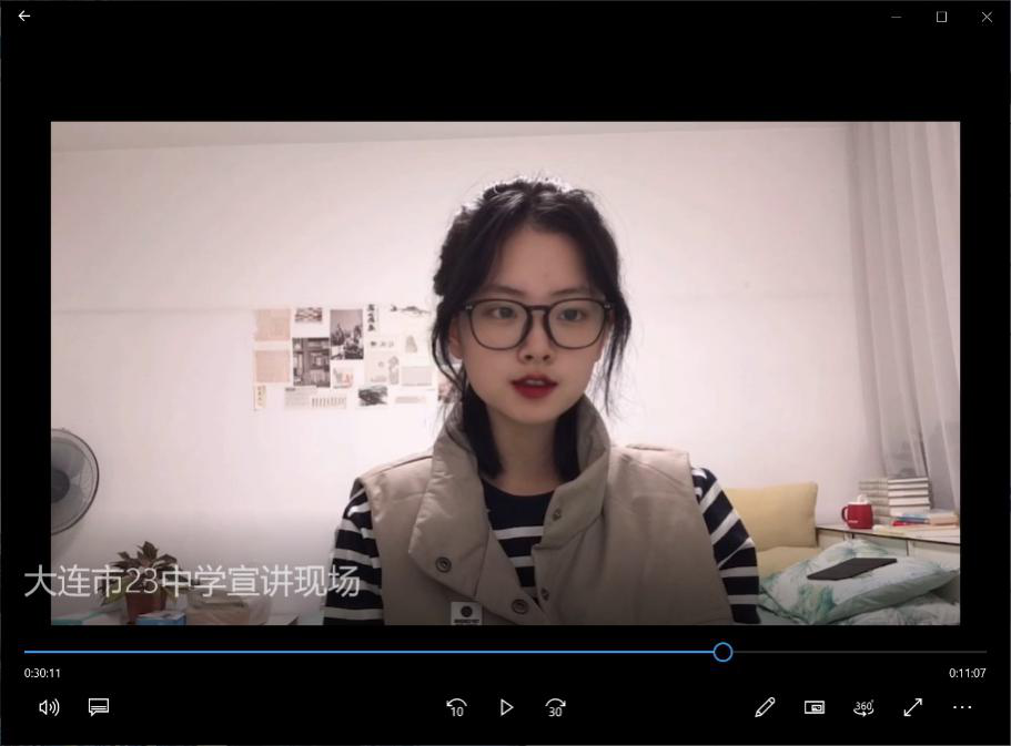 参加辽宁省大连市第二十三中学的宣讲同学出于对疫情防控的考虑,选取了一种新的招生宣讲方式,即通过制作视频短片的形式描绘香蕉视频