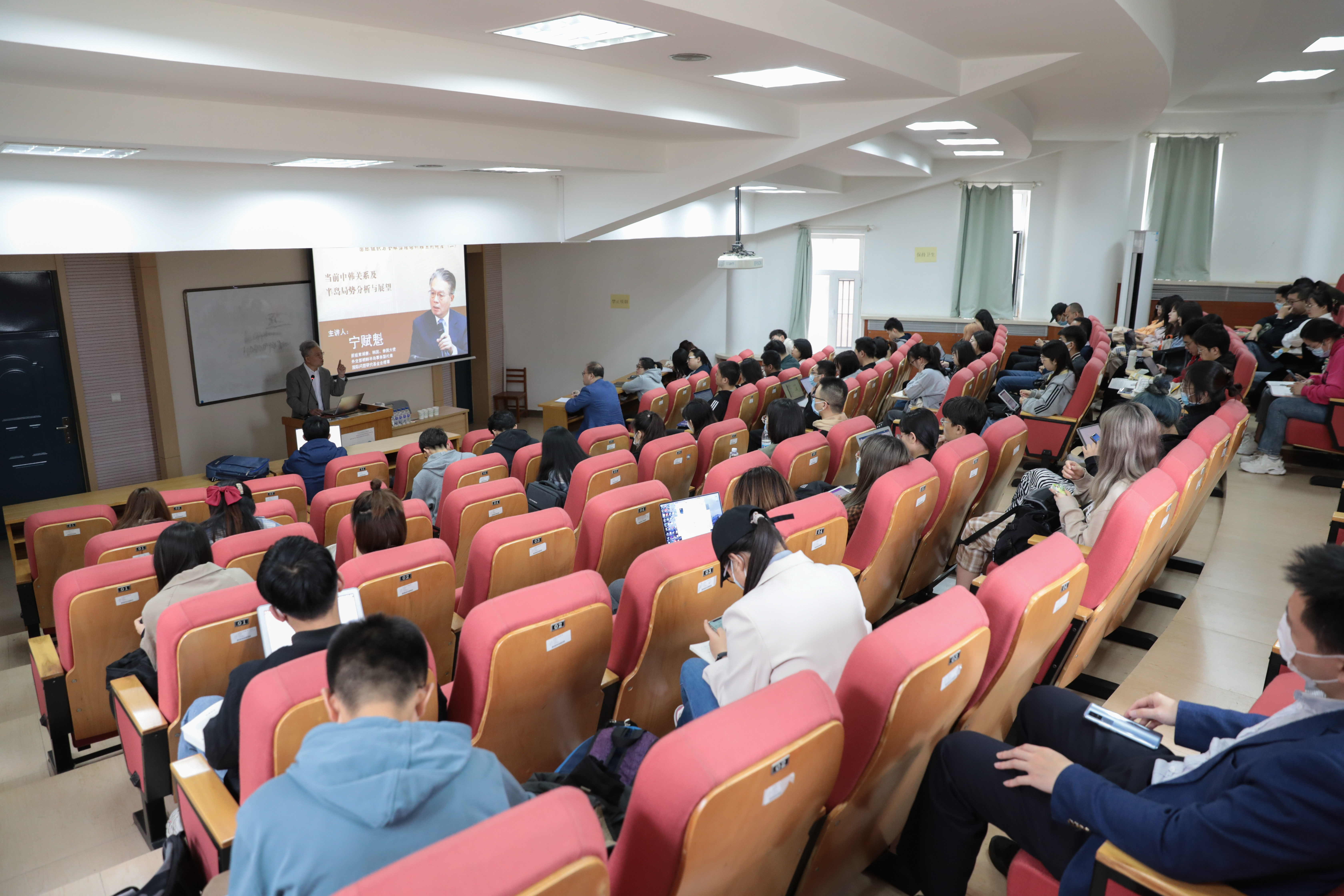 宁赋魁大使主要围绕中韩关系的发展演进和半岛局势分析两方面进行讲解。他分析了推动当前中韩关系的积极因素,也指出双方面临的困难及挑战。当谈到半岛局势时,宁赋魁大使结合自己的外交经历,就半岛外交进程进行了回顾,并对东北亚地区的发展做出了展望。整场讲座既有思维的深度,又有视野的广度,对中韩关系和半岛问题进行了多角度、多层次的分析。讲座尾声,宁赋魁大使借用毛主席“暮色苍茫看劲松,论云飞渡仍从容”的诗句进行总结,寄语学生们秉持青年学生应有的责任与担当,积极投身祖国的外交事业。