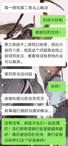 以上就是“权益为你”学生权益保障活动第一期校办食堂篇中同学们反馈的所有问题和处理结果啦。各个食堂都十分重视,迅速采取措施解决了相关问题。感谢同学们提出的意见,也感谢食堂的及时反馈!